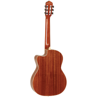 ENREDO MADERA CLASSICAL SERIES Producing fine handcrafted Spanish style classical guitars is a centuries old luthiers secret and although to some, a guitar is a guitar, those in the know, including our luthiers, will point to significant differences in the disciplines of making nylon strung guitars & steel strung guitars. Our small team of luthiers are well versed in Spanish classical instrument production and take pride in every instrument they produce. Inspired by the traditional Spanish guitar styles of Flamenco and Mariachi, take a dive into this new classical guitar range. Featuring a choice of Spruce or Cedar tops with solid options, and paired perfectly with matching Mahogany or Walnut backs. You're bound to find your classical style with the various options within this beautiful range. TW EM DC6 SHAPE : Full Size Classical Cutaway TOP : Solid Spruce BACK : Mahogany SIDES : Mahogany FINGERBOARD : Tech Wood BRIDGE: Tech Wood EQ: Fishman Presys FINISH : Natural Gloss STRINGS : Savarez SKU : TWEMDC6 RANGE : Enredo Madera Dominar Please Note: Specifications are subject to change at any time. Please refer to https://www.tanglewoodguitars.co.uk/