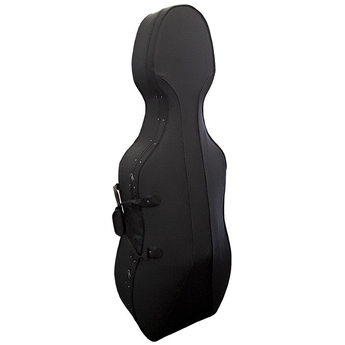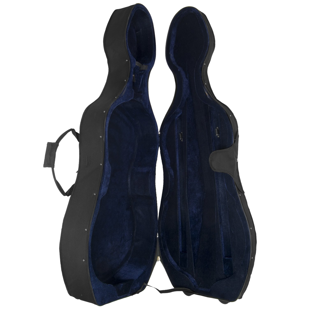 Black padded Cordura exterior. Poly-foam case with Plush Blue interior lining. Exterior music pocket. Two handles and Two shoulder straps for use as a backpack. Small interior accessory pocket. Two bow holders. Velcro neck anchor. Easy Roll Wheels for eas
