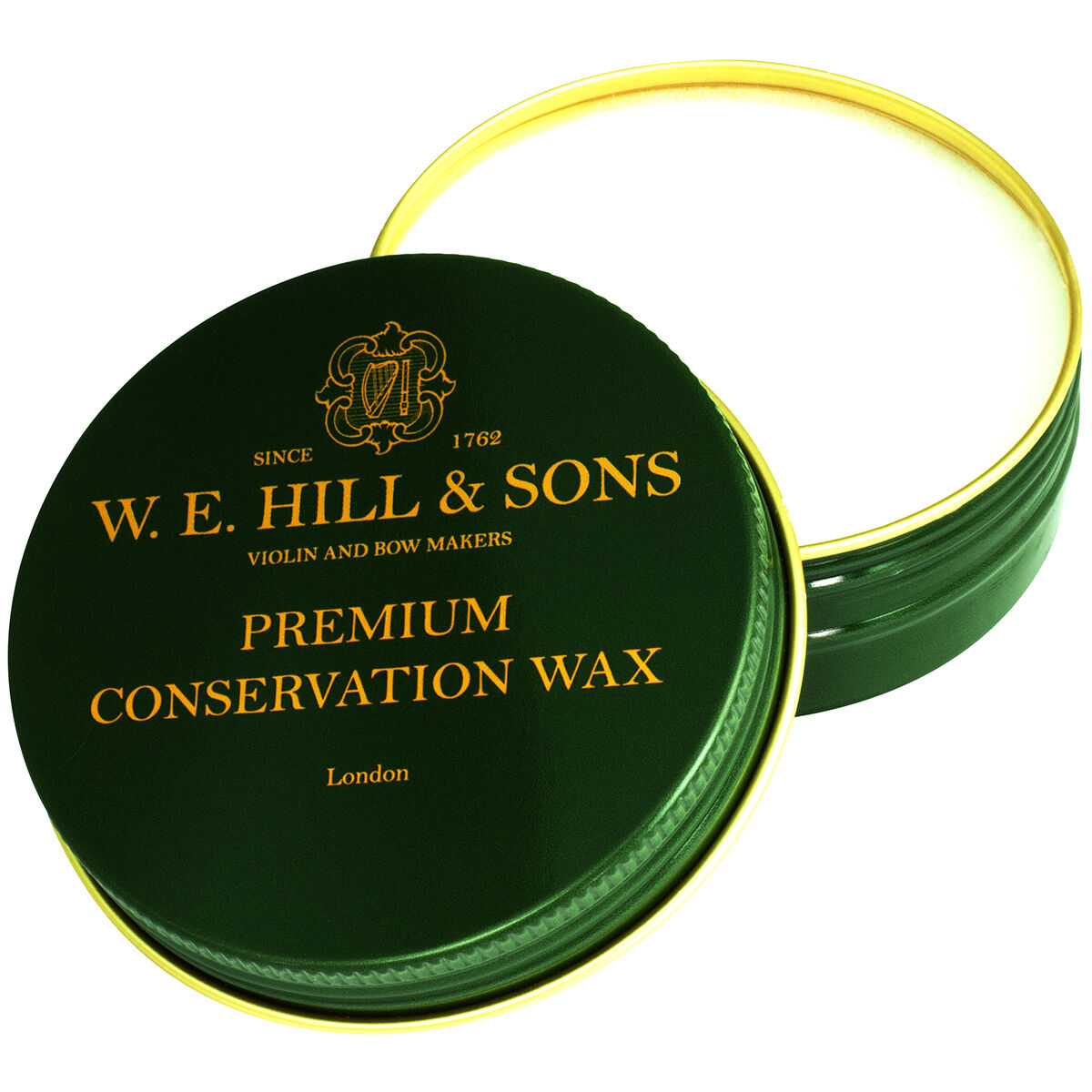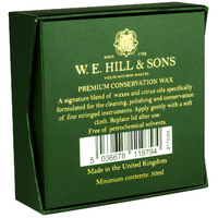 W.E.Hill & Sons Conservation Wax. Newly formulated specifically to help clean, care for and conserve your fine stringed instruments and bows, W.E.Hill & Sons’ Conservation Wax is made using a unique blend of microcrystalline waxes and citrus oils. Developed and manufactured in the UK, Hill Premium Conservation Wax has undergone an extensive testing programme that has shown to aid in the effective removal of rosin build-up and act as a gentle polishing agent without the need for petrochemical solvents. Conservation Wax is not abrasive and is perfectly transparent when applied. Apply gently with a soft cloth. Replace lid after use. Supplied in a 50ml, resealable aluminium tin and housed in a premium display box. - "We’re delighted to have developed this enriching, natural, stringed instrument conservation wax which does not include petrochemical solvents." I have successfully used the W.E.Hill & Sons’ Conservation Wax on instruments by Stradivari and Guarneri, as well as on my own instruments. The fantastic results have exceeded our highest hopes and speak for themselves - but it is also a joy to use and a pleasure for the senses of the violin maker and restorer!” Peter Greiner, violin maker & director of W.E. Hill & Sons