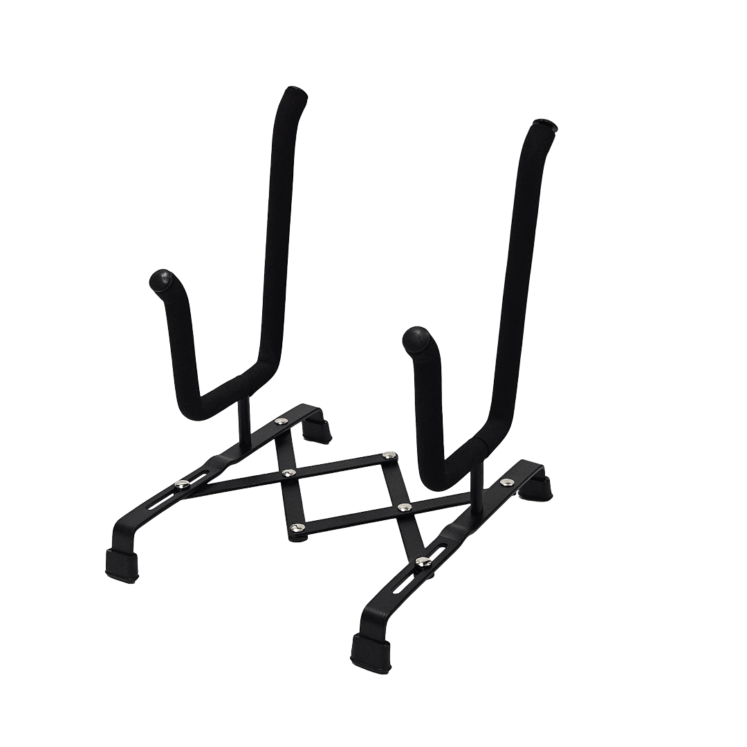 The stand’s arms can be easily expanded to securely hold both violins and ukuleles, offering a customizable fit for various instrument dimensions. Lightweight and foldable, the FPS stand is designed to be a space saver that folds flat to fit in bags, draw
