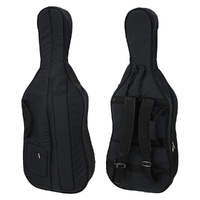 Enrico Deluxe black heavy-duty padded bass bag with strong zippers, 10-handles, bow pocket and padded sleeve, music pocket and velcro endpin straps. Enrico Deluxe Double Bass Bag 1/10 Upper bout (internal): 45cm Lower bout (internal) : 56cm Body length (internal) : 82cm Full length (internal) : 143cm Measurements may vary between shipments.