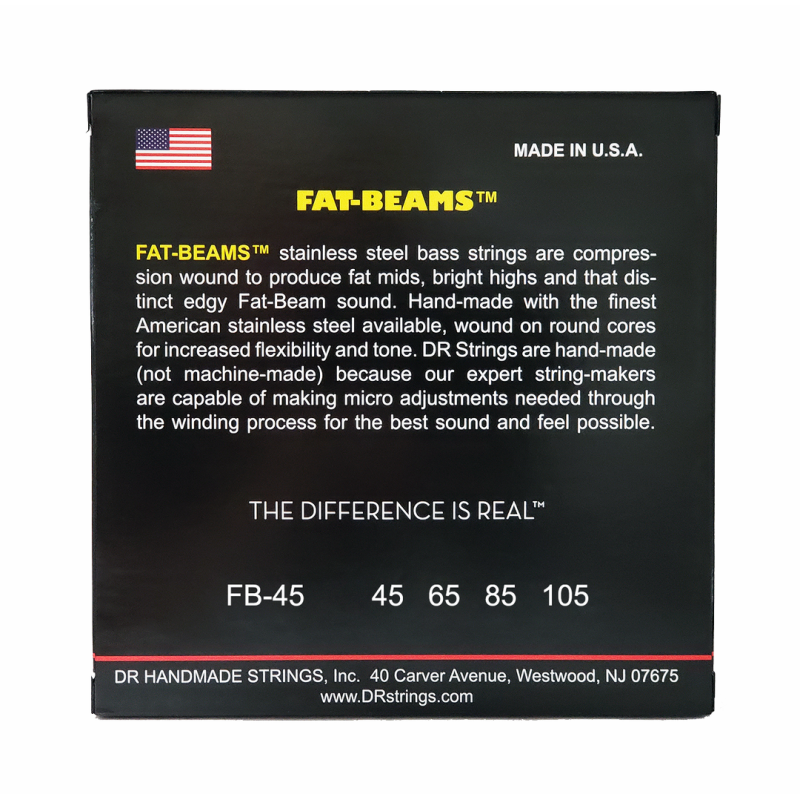 Our FAT-BEAMS bass strings are hand-made with the finest American stainless steel available, wound on round cores for increased flexibility and tone. Fat-Beams are compression wound to produce fat mids, bright highs, and that distinct edgy Fat-Beam sound.