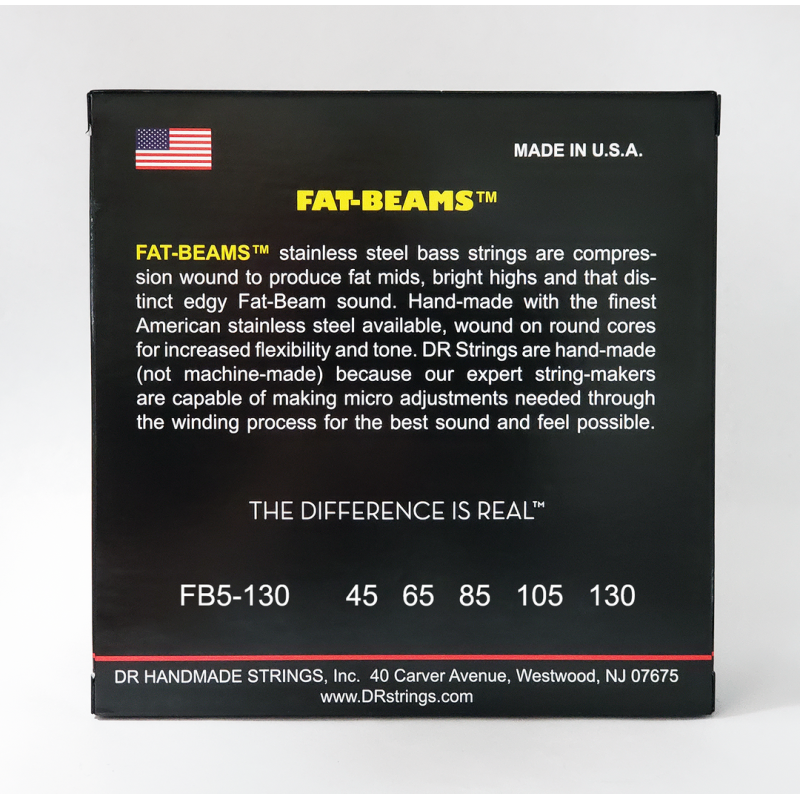 Our FAT-BEAMS bass strings are hand-made with the finest American stainless steel available, wound on round cores for increased flexibility and tone. Fat-Beams are compression wound to produce fat mids, bright highs, and that distinct edgy Fat-Beam sound.