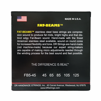Our FAT-BEAMS bass strings are hand-made with the finest American stainless steel available, wound on round cores for increased flexibility and tone. Fat-Beams are compression wound to produce fat mids, bright highs, and that distinct edgy Fat-Beam sound.