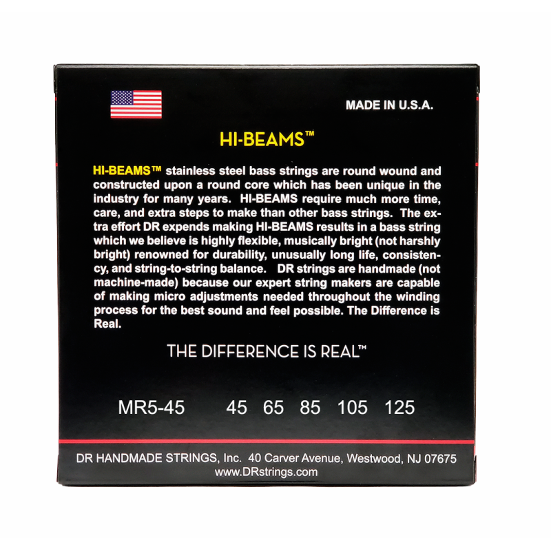 Hi-Beam stainless steel bass strings are round wound and constructed on a round core which makes them unique and also require more time to construct. This extra effort makes Hi-Beams a bass string that is highly flexible and musically but not harshly brig
