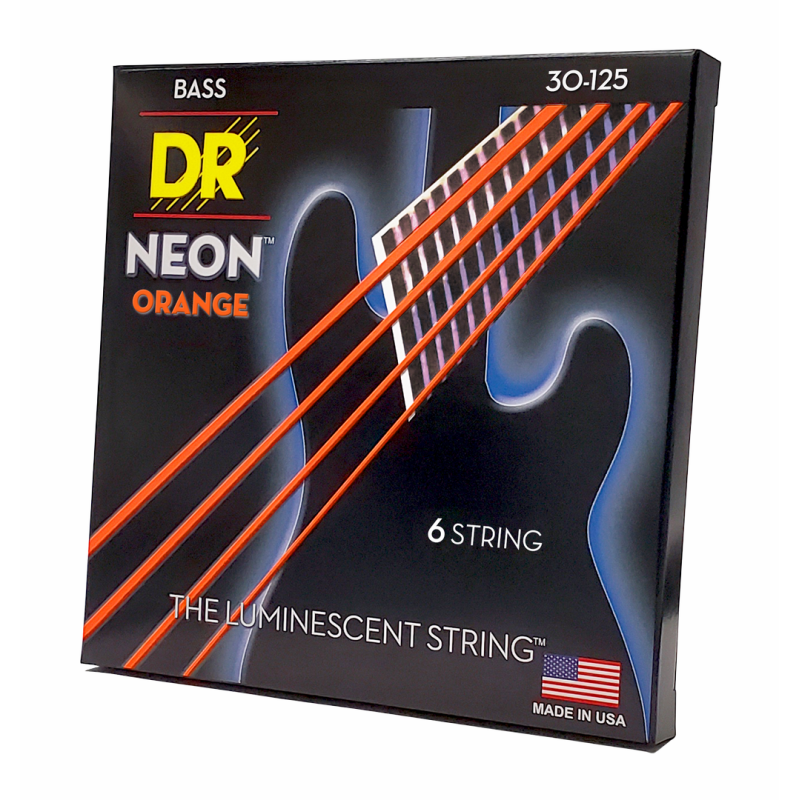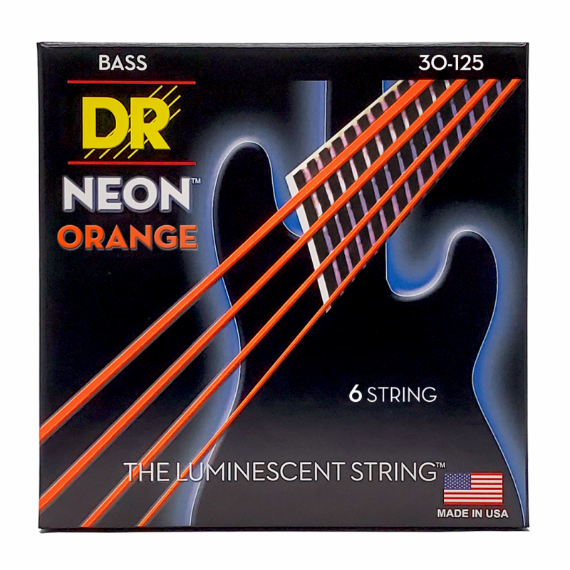 DR Hi-Def Neon Orange 6-String Bass Strings, Medium Gauge 30-125, K3 Coating for Enhanced Clarity and Tone Life