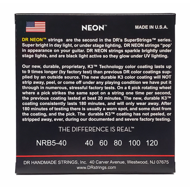 The K3 coating is the first coating that players report, sound as good or better than uncoated strings. ​ DR's remarkable and proprietary K3 Technology coating is the first coating that makes no apologies and no excuses for not delivering sound equal to uncoated strings. Players tell us that these strings have more volume, less unwanted overtones, greater clarity and articulation than standard, uncoated strings. Yet, they provide the same protection due to corrosion and perspiration as well as increased tone life that coated strings are known for.