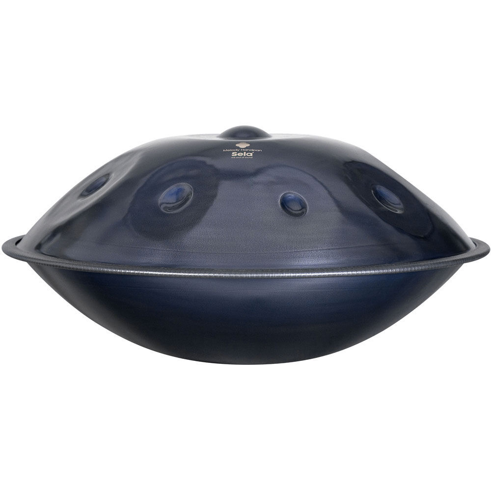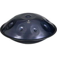 The handpan is an absolutely beginner-friendly instrument where percussion and melody meet. Playing the handpan creates soothing, spherical and long-lasting soundscapes that completely captivate both the player and the listener. Neither previous experience nor knowledge of music theory is necessary, because all the tone fields on the handpan are on a fixed scale. With most models, it is not possible to strike dissonant notes, i.e. notes that sound "wrong". Therefore, you can follow your own intuition while playing and lose yourself in mysterious, dreamy melodies after only a short time. With a little practice, of course, more complicated rhythms, captivating chords and two-part melodies are also possible. A handpan is just as suitable as a solo instrument as it is for playing together with other handpans or other instruments such as tongue drums, guitar or percussion. Sela Melody Handpans offer an outstandingly affordable entry into the world of handpans without having to make any compromises in sound and workmanship. They are partly machine-made and consist of nitrided steel. Nitriding hardens the surface of the handpan, which gives it a percussive sound that decays much faster than that of stainless steel handpans. Due to their shorter sustain, nitrided handpans are also ideal for fast playing, as the notes are more clearly separated from each other and overlap less. This property is also very beneficial for beginners, as improvising and playing by gut feeling is much easier. Handpans made of nitrided steel require more care than stainless steel models and should therefore be cleaned regularly and protected from moisture. Sela Melody handpans have a matt, dark blue finish, which gives them a subtle and fascinating look. The D Amara tuning (fundamental frequency 440 Hz) is one of the most popular handpan scales around. The central note in the middle of the handpan is D3, around it are arranged in a circle the notes A3, C4, D4, E4, F4, G4, A4 and C5. Due to its bright-sounding D minor scale, the D Amara can be used to play a wide variety of melodies, ranging from quietly meditative to melancholy to powerful and cheerful. The model is therefore just as suitable as a solo instrument as it is for playing together with other handpans or other instruments such as tongue drums, guitar or percussion. Each Sela Handpan comes with a bag made of tear-resistant nylon fabric, which, thanks to its good lining, provides optimal protection during transport. It can be carried either by hand with the two handles or comfortably as a backpack with the adjustable shoulder straps. A practical outer compartment offers enough space for small accessories such as a metronome. SPECIFICATIONS: Tuning: D Amara (440 Hz) Tones: D3 / A3, C4, D4, E4, F4, G4, A4, C5 Material: Steel, nitrided High-quality workmanship Handmade Colour: Dark Blue Weight: 4.6kg Diameter: 57cm Includes padded bag with rucksack straps