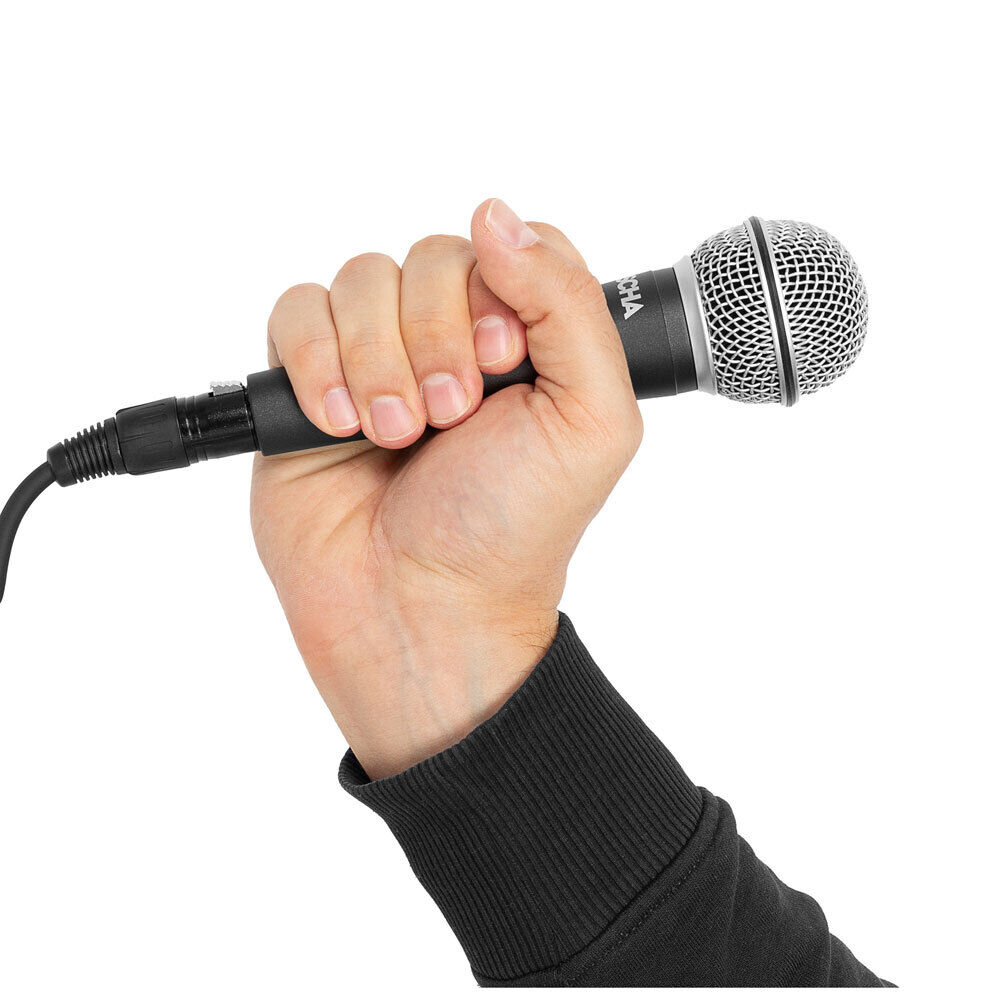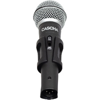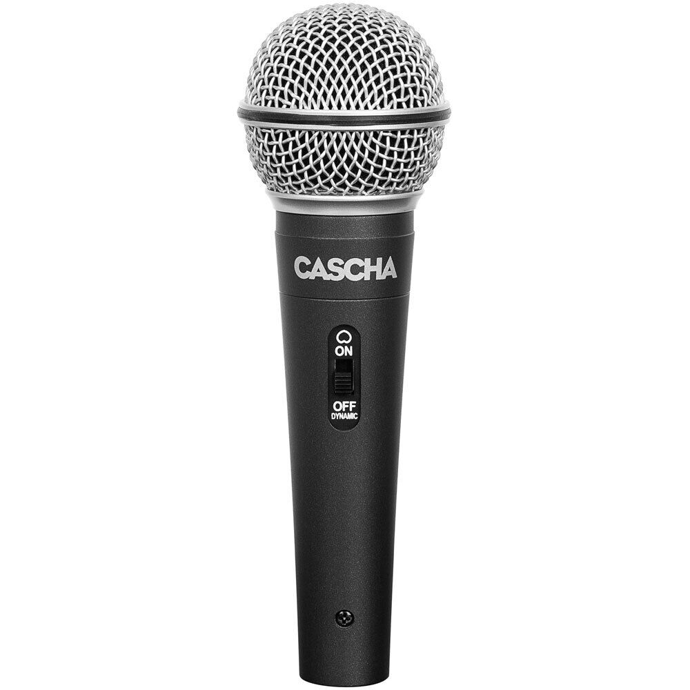 The Cascha Stage Dynamic Microphone is a true all-rounder. No matter if used as a vocal microphone, on stage, for readings or any other speech application: The Cascha Stage convinces in terms of sound quality and robustness! With its on/off switch you can mute it at any time when not in use. The included microphone clamp and the 3m long XLR cable round off the set perfectly and offer everything for an immediate entry into the world of music. FEATURES: Includes 3m (10ft) XLR Cable and Mic Holder Element: Dynamic Polar Pattern: Uni-directional Frequency Response: 50Hz-16kHz Sensitivity: -54dB±3dB (OdB = 1V/Pa at 1 kHz) Output lmpedance: 500Ohms ±30% (at 1 kHz)