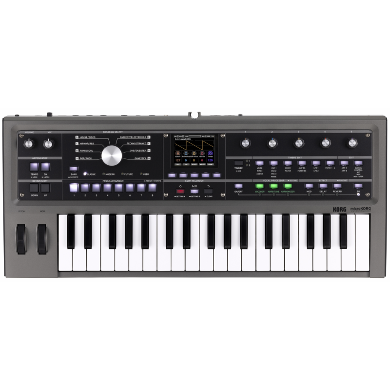 A new origin. The microKORG, one of the most iconic and recognizable synths in the history of music, revolutionized the music world with its unique form factor and unmistakable sounds, making it an industry standard for musicians everywhere. Used in countless legendary performances and recordings, its legacy spans more than 20 years. Renowned and loved by musicians, sound engineers, producers and gadget buffs everywhere, the microKORG has now evolved to a more powerful, more flexible and richer level - the new microKORG 2. While retaining some of the iconic aspects of the original , including the convenient portable size, easy to play mini keybed, the large dial for selecting program genres or the vocoder with dedicated mic, the microKORG 2 offers a completely new, powerful sound engine, many more useable programs, a visually astounding user interface, and so much more. The microKORG 2 features a gorgeous 2.8-inch full-color IPS LCD display that not only makes editing incredibly easy and intuitive, but brings immediate information and instant gratification as users can visually shape and “see” their sounds. As well as a powerful vocal processor with harmonizer and hard-tuning functions, the microKORG 2 also features a loop recorder that makes it the perfect production and performance tool for today’s diverse music world and beyond. Beloved by musicians worldwide, its intuitive interface and powerful, rich, diverse sound make the microKORG 2 the ideal synth for anyone ready to explore the magic of synthesis. A new standard: the microKORG 2