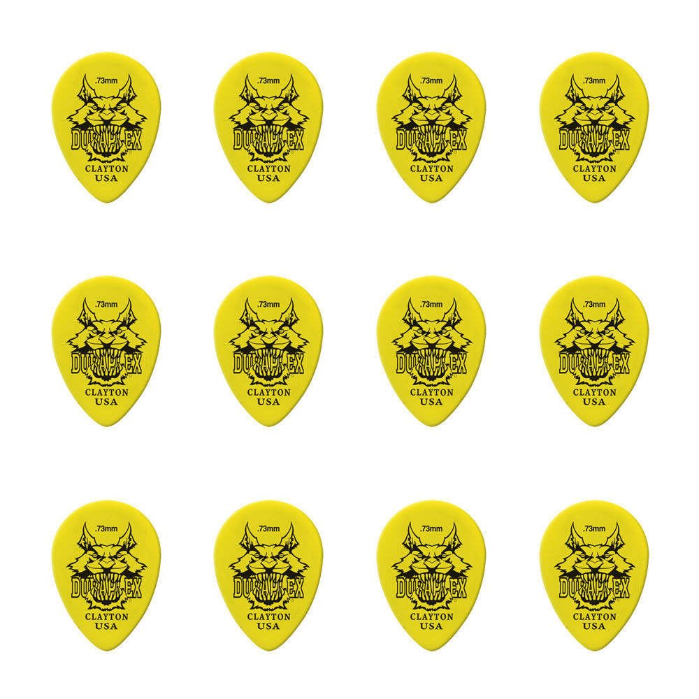 Clayton Duraplex Guitar Picks are crafted from Delrin, a highly durable material known for its exceptional strength and smooth texture. Built to withstand the demands of even the most aggressive playing styles, Duraplex picks offer a long-lasting, consistent performance with a crisp, clear tone.he sleek surface ensures minimal friction for fast, fluid picking, while the durable design resists wear and tear, making them perfect for both studio sessions and live performances. With Clayton Duraplex Picks, you get a reliable, high-quality tool that's designed to bring out the best in your playing, time after time. SPECIFICATIONS: Series: Duraplex Material: Delrin Gauge: 0.73mm Shape: Small Teardrop Pack Qty: 12 Made in the USA The Story of Steve Clayton... Legacy in Music Accessories Steve Clayton, Inc., based in Talent, Oregon, is a renowned manufacturer of high-quality musical accessories, with a focus on guitar picks. The company's origins go back to 1966 when a 16-year-old Steve Clayton, armed with creativity and determination, began selling beautifully designed guitar chord chart posters. Living out of his van, he traveled across the country, visiting music stores and building his business from the ground up. Today, the company operates out of a state-of-the-art 16,000-square-foot factory, continuing its legacy of innovation and American craftsmanship. From Guitar Slides to Picks: The Spark of Inspiration Steve's journey into guitar picks began with a challenge. Initially, he focused on selling guitar slides, but increased competition in the market prompted him to pivot. Determined to create a product with long-term success, Steve devised a list of essential criteria: Non-perishable: A product that wouldn't spoil or degrade over time. Compact: With limited warehouse space, it had to be small. Distribution-ready: A product that could seamlessly integrate into existing music retail networks. Consumable: Something musicians would buy repeatedly. This led him to guitar picks, a small but indispensable accessory for every guitarist. In 1979, Steve Clayton, Inc.aunched its first line of guitar picks, setting a new standard for quality and performance. Revolutionary Guitar Pick Materials Steve Clayton, Inc. has always been at the forefront of material innovation, introducing two groundbreaking plastics to the guitar pick world: Acetal Made from a nearly indestructible plastic developed by DuPont, Acetal picks resist notching during play, providing exceptional durability and performance.heir reliable grip and strength make them a favorite among players. Ultem In the mid-1980s, the company introduced Ultem picks, which deliver crisp, clear tones and brighten guitar strings. This material quickly became a sensation among musicians and has since been imitated by other manufacturers, a testament to its enduring popularity. The Birth of the Iconic Eagle Logo Steve's creative process for branding began humbly, inspired by clip art books and rub-on transfers, long before the age of digital design. His first designs featured his name, Clayton, and an elephant for his innovative extra-heavy picks. In a stroke of inspiration, Steve discovered a Roosevelt-era eagle design with “"Made in America"” emblazoned across it. He admired its nostalgic, patriotic vibe and adapted it to create the now-iconic Clayton USA eagle logo. With subtle tweaks to give it a sharper, edgier look, the eagle became a perfect symbol of the company's values: quality, innovation, and American craftsmanship. Steve Clayton Products: Trusted by Top Artists Their products are trusted by some of the biggest names in music, including Johnny Cash, Tenacious D, Eric Church, James Otto, Switchfoot, and Lynyrd Skynyrd. The company also partners with iconic brands like Playboy, Warner Bros., Paramount Pictures, and more to create licensed designs. Steve Clayton, Inc. offers a wide range of products for musicians, including: Guitar picks (standard and custom) Guitar slides Guitar straps Capos Guitar Care Products From humble beginnings as a teenager selling chord chart posters on the road to leading a global musical accessories brand, Steve Clayton's journey exemplifies creativity, resilience, and innovation. Today, the business remains proudly family-owned, with a third generation now joining the team to continue the legacy. Every Steve Clayton product embodies the values of quality, craftsmanship, and passion that have been passed down through the family. When you buy a Steve Clayton pick, you're not just purchasing a professionally crafted, American-made accessory, you're supporting a family tradition dedicated to inspiring musicians around the world.