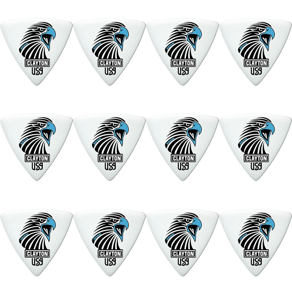 Elevate your playing with Clayton's renowned Acetal picks, featured in a sharp triangle shape for an extra edge. Designed for maximum precision and a razor-sharp attack, these picks offer enhanced control and clarity, making them perfect for speed picking, fast riffs, and intricate playing styles.he sharp edges provide a crisp response and unmatched accuracy, ensuring every note cuts through with power.hether you're shredding solos or driving heavy rhythms, these picks will give you the performance boost you've been searching for. Built to last and trusted by pros, Clayton Acetal picks are the timeless choice for serious guitarists.ade in Clayton's Sharp Triangle Shape. SPECIFICATIONS: Series: Acetal Sharp Eagle Material: Acetal Gauge: 0.50mm Shape: Sharp Triangle Pack Qty: 12 The Story of Steve Clayton... Legacy in Music Accessories Steve Clayton, Inc., based in Talent, Oregon, is a renowned manufacturer of high-quality musical accessories, with a focus on guitar picks. The company's origins go back to 1966 when a 16-year-old Steve Clayton, armed with creativity and determination, began selling beautifully designed guitar chord chart posters. Living out of his van, he traveled across the country, visiting music stores and building his business from the ground up. Today, the company operates out of a state-of-the-art 16,000-square-foot factory, continuing its legacy of innovation and American craftsmanship. From Guitar Slides to Picks: The Spark of Inspiration Steve's journey into guitar picks began with a challenge. Initially, he focused on selling guitar slides, but increased competition in the market prompted him to pivot. Determined to create a product with long-term success, Steve devised a list of essential criteria: Non-perishable: A product that wouldn't spoil or degrade over time. Compact: With limited warehouse space, it had to be small. Distribution-ready: A product that could seamlessly integrate into existing music retail networks. Consumable: Something musicians would buy repeatedly. This led him to guitar picks, a small but indispensable accessory for every guitarist. In 1979, Steve Clayton, Inc.aunched its first line of guitar picks, setting a new standard for quality and performance. Revolutionary Guitar Pick Materials Steve Clayton, Inc. has always been at the forefront of material innovation, introducing two groundbreaking plastics to the guitar pick world: Acetal Made from a nearly indestructible plastic developed by DuPont, Acetal picks resist notching during play, providing exceptional durability and performance.heir reliable grip and strength make them a favorite among players. Ultem In the mid-1980s, the company introduced Ultem picks, which deliver crisp, clear tones and brighten guitar strings. This material quickly became a sensation among musicians and has since been imitated by other manufacturers, a testament to its enduring popularity. The Birth of the Iconic Eagle Logo Steve's creative process for branding began humbly, inspired by clip art books and rub-on transfers, long before the age of digital design. His first designs featured his name, Clayton, and an elephant for his innovative extra-heavy picks. In a stroke of inspiration, Steve discovered a Roosevelt-era eagle design with “"Made in America"” emblazoned across it. He admired its nostalgic, patriotic vibe and adapted it to create the now-iconic Clayton USA eagle logo. With subtle tweaks to give it a sharper, edgier look, the eagle became a perfect symbol of the company's values: quality, innovation, and American craftsmanship. Steve Clayton Products: Trusted by Top Artists Their products are trusted by some of the biggest names in music, including Johnny Cash, Tenacious D, Eric Church, James Otto, Switchfoot, and Lynyrd Skynyrd. The company also partners with iconic brands like Playboy, Warner Bros., Paramount Pictures, and more to create licensed designs. Steve Clayton, Inc. offers a wide range of products for musicians, including: Guitar picks (standard and custom) Guitar slides Guitar straps Capos Guitar Care Products From humble beginnings as a teenager selling chord chart posters on the road to leading a global musical accessories brand, Steve Clayton's journey exemplifies creativity, resilience, and innovation. Today, the business remains proudly family-owned, with a third generation now joining the team to continue the legacy. Every Steve Clayton product embodies the values of quality, craftsmanship, and passion that have been passed down through the family. When you buy a Steve Clayton pick, you're not just purchasing a professionally crafted, American-made accessory, you're supporting a family tradition dedicated to inspiring musicians around the world.