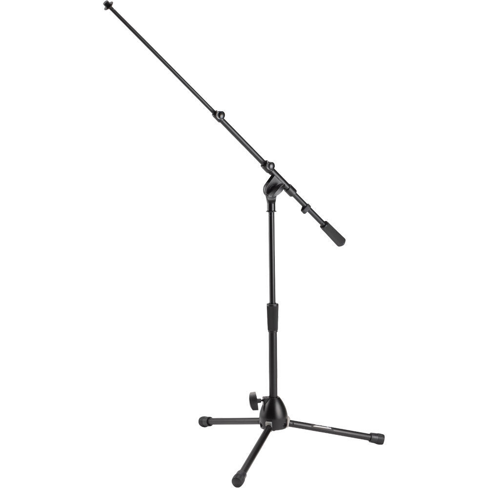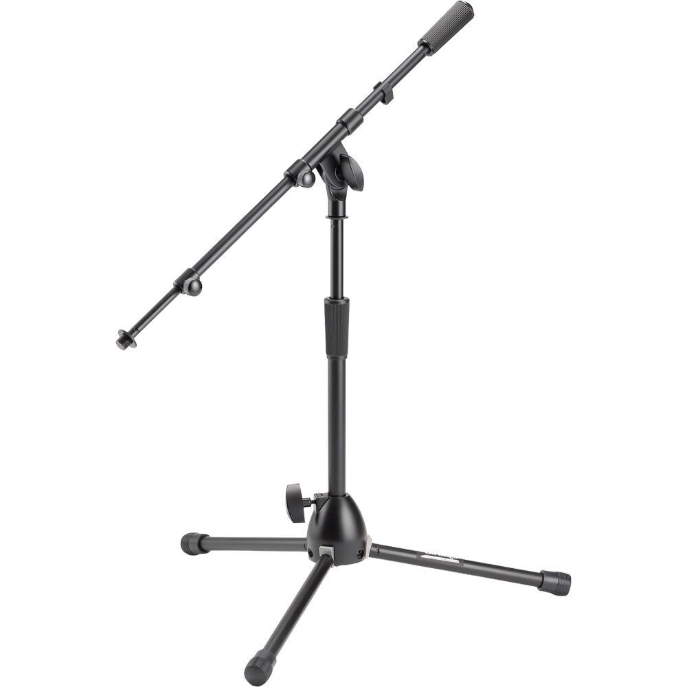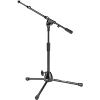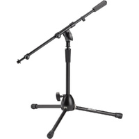 A wide, splayed base gives our MS9411TB Kick Drum Mic Stand with Tripod Base and Telescoping Boom Arm the stability of larger models, while its compact size permits easy placement in tight spaces. Rugged construction with a scratch-resistant finish provide outstanding durability. Height, boom angle, and boom length are all adjustable, enabling precise miking of drums and amps. Telescopic boom shafts extend to reach every part of a drum kit. The tripod base folds down for convenient storage and transportation. FEATURES: Solid threaded upper shaft with tightening washer securely mounts mic accessories Heavy-duty construction ensures dependable performance Extra-thick steel shafts increase stability for reliable mic placement Heavy-duty clutch reliably adjusts height 15" - 24" for with bass drums and guitar amps SPECIFICATIONS: Product Type: Microphone Stand Base Spread: 19" Boom Length: 19" - 33" Height: 15" - 24" Colour: Black