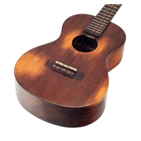 The Mahalo Historic Series Baritone Ukulele MO4 is a beautifully crafted instrument that pays homage to the golden years of the ukulele. This ukulele is designed for both beginners and experienced players, offering exceptional sound quality and playability. Featuring a solid Red Cedar top and solid mahogany back and sides with an arched back, the MO4 delivers a balanced tone with great depth, superb projection, and impressive sustain. The one-piece mahogany neck is capped with an Amara ebony fingerboard, ensuring effortless playability and a smooth feel. Key features of the Mahalo MO4 include: - Top: Solid Red Cedar - Back & Sides: Solid Mahogany with Arched Back - Neck: One Piece Mahogany - Headstock: Slotted with Abalone Inlaid Logo - Fingerboard: Amara Ebony with Abalone Dot Inlaid Position Markers - Bridge: Amara Ebony - Frets: 20 Nickel (Baritone) - Machine Heads: Waverly Style, Antique Brass with Ivoroid Buttons - Strings: Black - Saddle: Bone - Nut: Bone - Scale Length: 511mm (Baritone) - Finish: Hand Finished Historic Brown Matt This ukulele also comes with a heavy-duty carry bag featuring a shoulder strap, making it easy to transport while keeping your instrument protected. With its gorgeous hand-finished look and expert craftsmanship, the Mahalo MO4 is a true player's instrument that looks as great as it sounds. Whether you're practicing, traveling, or performing, this ukulele is a perfect companion.