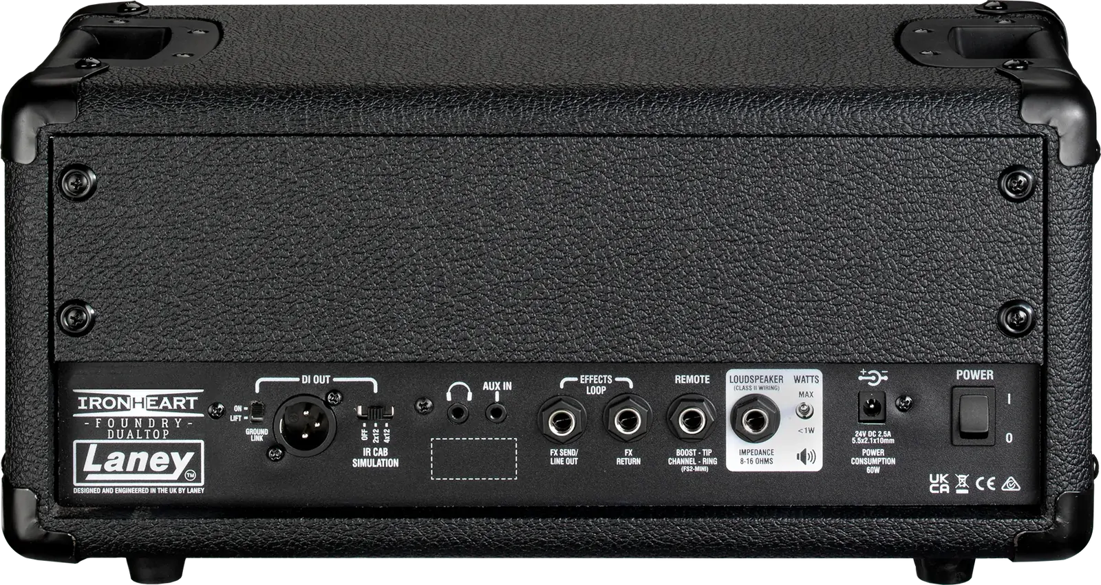 The Foundry Series 60W Single Channel Guitar Amp Head with Reverb and IR Cab Simulations delivers powerful and versatile tone shaping in a compact and robust design. This amp head is engineered to provide rich, professional sound suitable for both stage and studio use. Key features include: - 60 watt Class D amplifier - Single channel design with high and low power modes - Front-loaded control panel for easy access - Single input with footswitchable preboost level - Channel features ASYM/CLEAN/SYM modes, gain, and volume controls - Onboard Black Country Customs Secret Path reverb - XLR DI output with ground lift switch - Two switchable Laney custom IRs: 1 x 12" and 4 x 12" cabinet simulations - Cabinet emulated headphone socket for silent practice - Mini jack MP3/AUX input for jamming along with external audio - Transformer isolated FX loop for effects integration - Footswitch socket compatible with optional FS2MINI footswitch (not included) - External speaker connections for 8 and 16 ohm cabinets - Output power switch between 60W and less than 1W for flexible volume control - Durable plywood construction with metal protective corners, tolex covering, and rubber feet - Supplied with universal voltage power supply (100 - 240V) - Weight: 4.66 kg - Dimensions: 178 mm (H) x 535 mm (W) x 265 mm (D) - Finished in sleek black Perfect for guitarists seeking a versatile, high-quality amp head that combines classic tone options with modern features, the Foundry Series 60W offers exceptional sound customization and reliable performance in a sturdy, portable design.