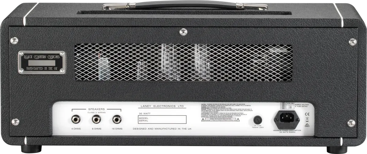 The Laney BCC LTD ED 30W Guitar Amp Head is a vintage-inspired amplifier designed for guitarists who seek a powerful yet straightforward tone. With a single-channel, non-master volume design, this amp delivers a clean, uncompressed sound, making it an ideal platform for pedals and effects. Key features of the Laney BCC LTD ED include: - 30 watt output with Class A/B design - Single channel, non-master volume style head - Hi and Lo bass and treble inputs that can be jumpered - Controls for presence, bass, middle, treble, and gain - Equipped with 3 x ECC83 preamp tubes - Powered by 2 x EL34 power tubes - Speaker outputs for 16 Ohm, 8 Ohm, and 4 Ohm connections - Plywood cabinet with retro piping and tolex covering - Rubber strap handle for easy transport - Finished in black - Made in the UK - Weight: 10.5 kg - Dimensions: 220mm (H) x 620mm (W) x 220mm (D) This amplifier combines vintage tone with modern reliability, making it an excellent choice for guitarists looking for a clean sound to shape their music with pedals or to enjoy the classic British amp character.