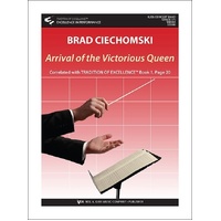 Arrival of the Victorious Queen is scored for developing band. A bold opening allows the band to sound confident as they play the main theme. After this opening, the theme is developed in the clarinets and trumpets, adding counter lines that easily allow the band to sound mature. The whole band gets a chance to shine in this piece, helping all students to sound mature and confident. A perfect opener to your fall concert! Correlated with Tradition of Excellence Book 1, page 20.