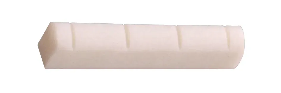 The Dr Parts VGP92 Slotted Bone Nut is a premium replacement nut specifically designed for ukuleles, enhancing both performance and tone. Made from durable bone, this nut features a slotted design with a curved front and a flat bottom, ensuring a secure fit and precise string spacing for optimal playability. - Slotted bone nut construction - Curved front design - Flat bottom for stable installation - Dimensions: 36mm (length) x 5mm (width) x 6.5mm (height) - Blister packed for protection and easy handling This nut is an excellent choice for musicians looking to upgrade or replace their ukulele nut with a reliable and well-crafted component that maintains excellent string alignment and tonal clarity.