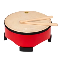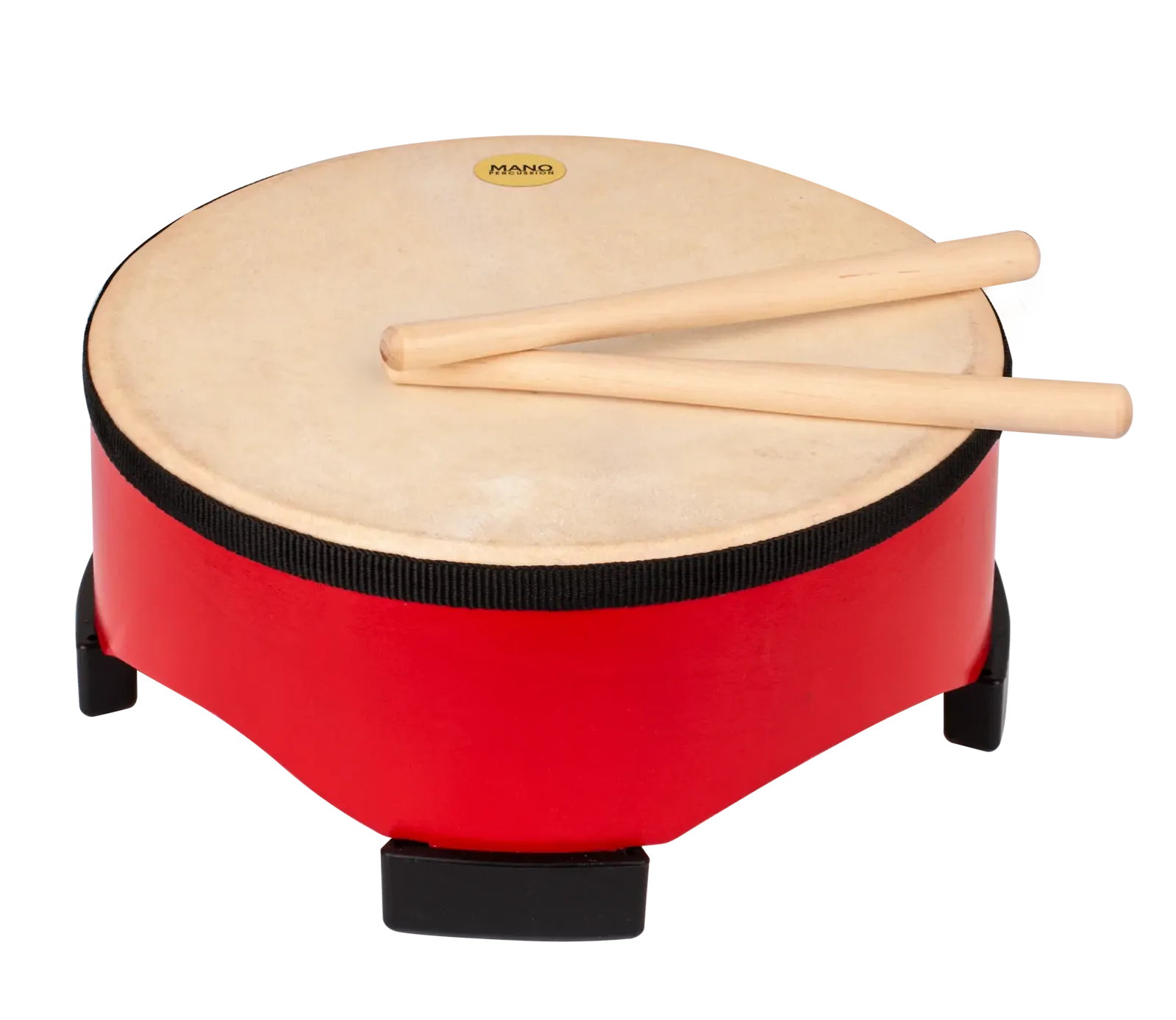 Experience the vibrant sound and striking appearance of the Mano 10 Inch Floor Drum in a bold red finish. This percussion instrument features a 10-inch diameter and stands 4½ inches high, making it an ideal addition to any musical setup. The drum is constructed with a painted wooden shell and includes four large rubber feet for stability. It is equipped with a natural hide pre-tuned head that produces deep, resonant sounds, ensuring powerful sound quality. Included with the drum are a pair of wooden beaters, allowing you to start playing right away. The eye-catching red finish not only enhances its visual appeal but also makes it a perfect choice for percussionists looking to add depth and color to their performances. - 10-inch diameter floor drum - 4½ inches high - Painted wooden shell with four large rubber feet - Natural hide pre-tuned head - Includes a pair of wooden beaters - Eye-catching red finish The Mano 10 Inch Floor Drum is a versatile instrument that is perfect for both individual practice and ensemble use, making it a valuable addition to any drum collection.