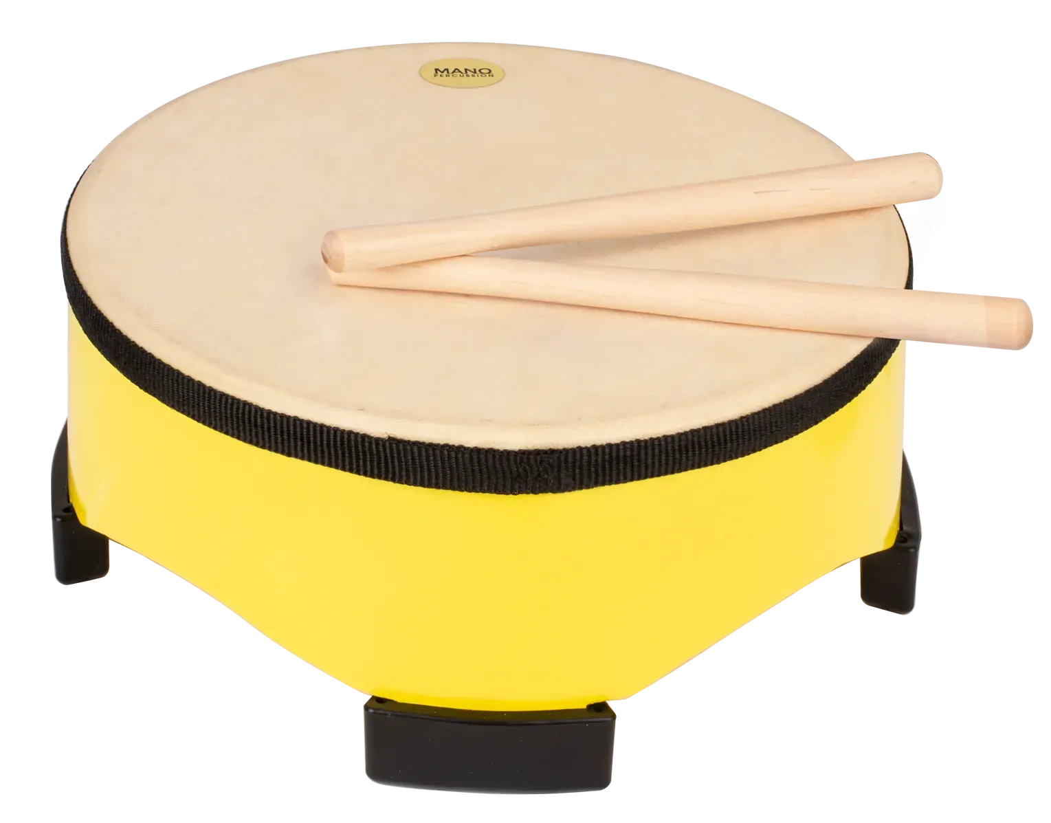 The Mano 10 Inch Floor Drum in a vibrant yellow finish combines striking visual appeal with a rich, resonant sound. This percussion instrument is designed for musicians seeking a compact yet powerful drum that delivers clear tones and enhances any performance. - 10-inch drum size - Floor drum design for stability and ease of play - Bright yellow finish for an eye-catching look - Painted wooden shell with 4 large rubber feet - Natural hide pre-tuned head - Includes a pair of wooden beaters - Dimensions: 10" x 4½" Ideal for percussionists looking to enhance their setup with a versatile and visually distinctive floor drum, this instrument suits a variety of musical styles and settings.