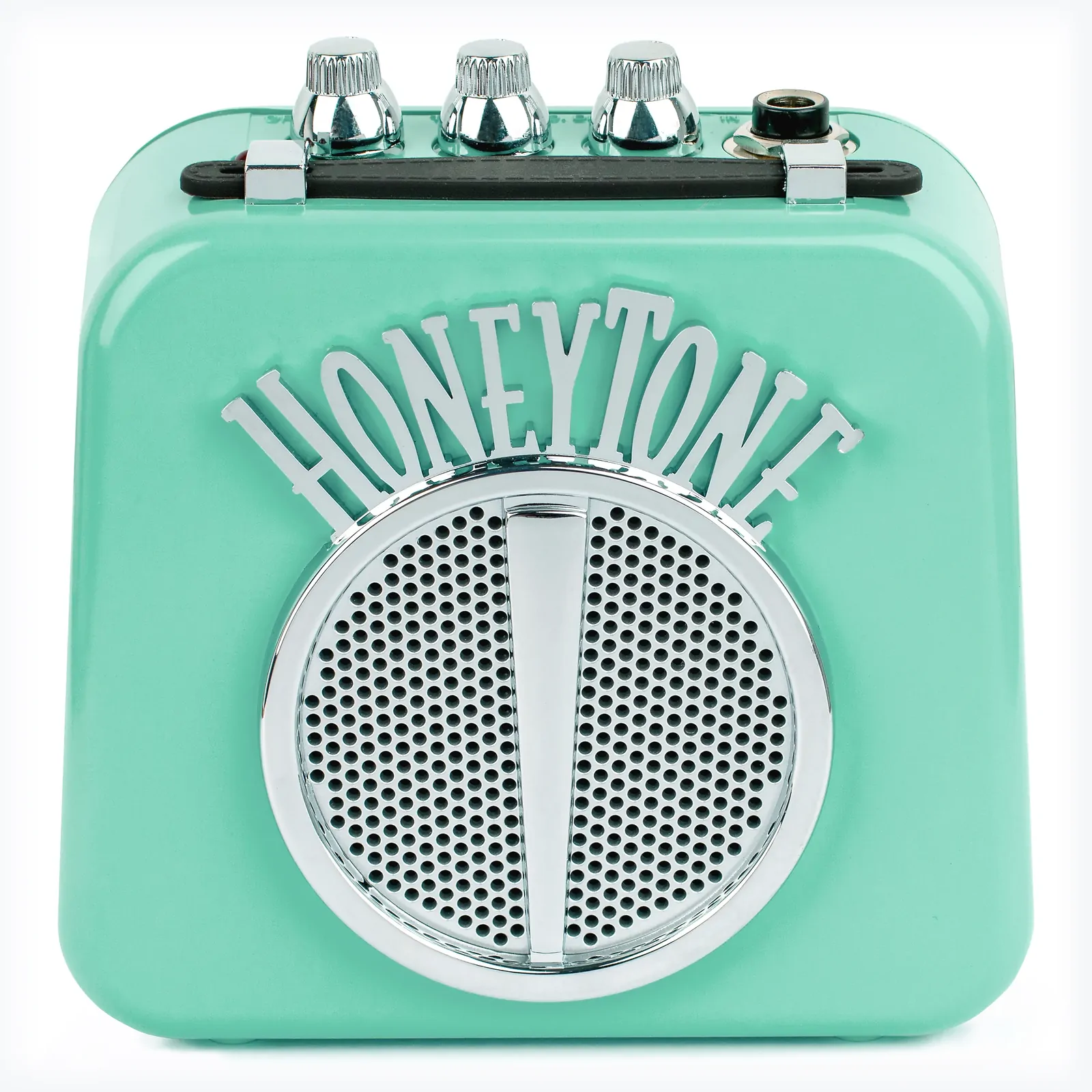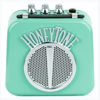The DANELECTRO Honeytone Mini Amplifier Aqua is a compact and stylish solution for amplifying your guitar sound. Its vibrant aqua finish not only enhances its visual appeal but also makes it a standout choice for musicians who value both performance and design in a portable amp. - Mini guitar amplifier with a distinctive aqua color - Compact and lightweight design for easy transport - Ideal for practice sessions and small performances This mini amplifier delivers a convenient and fun option for guitarists seeking reliable sound amplification in a small package, making it perfect for on-the-go musicians.