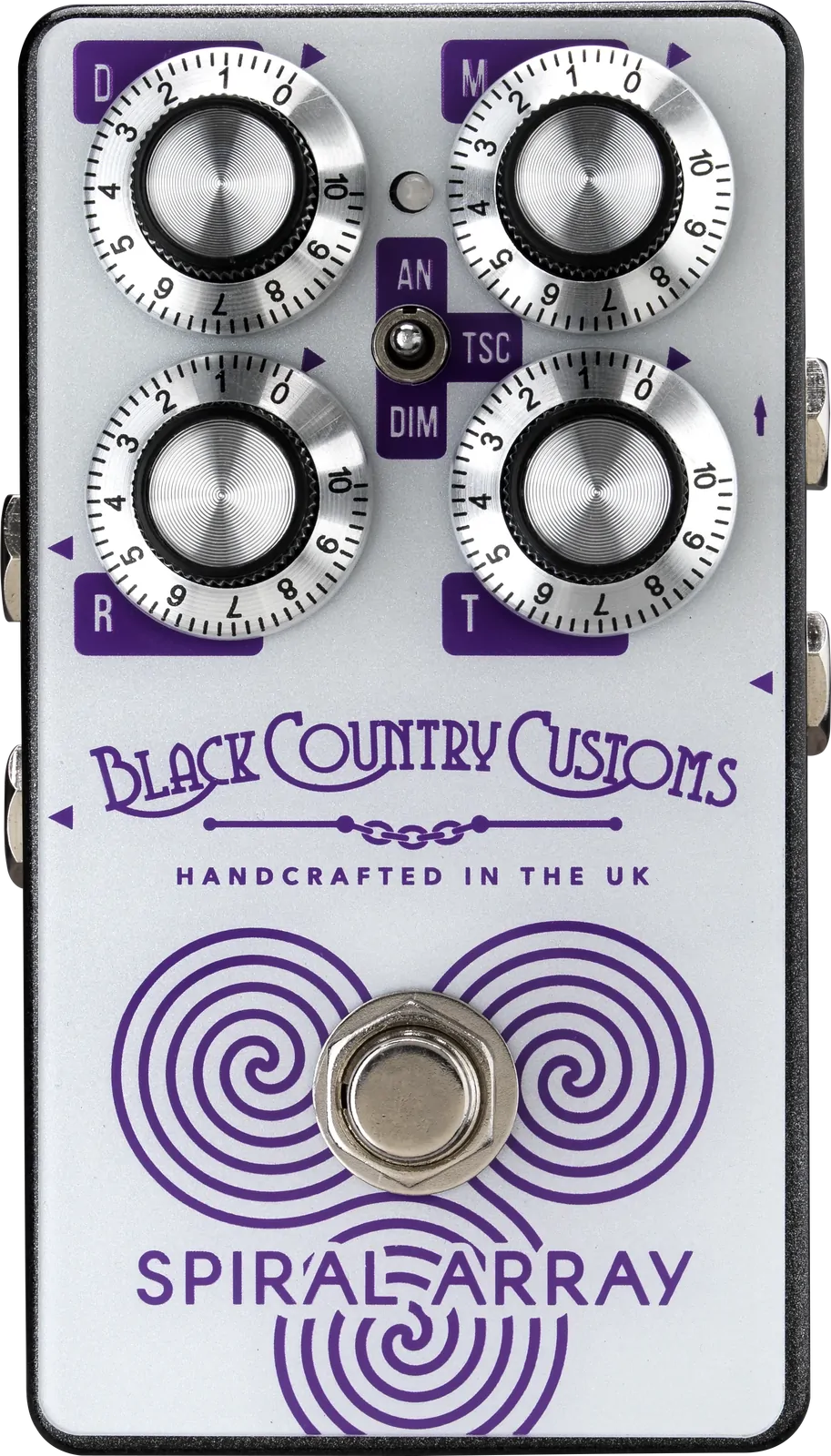The Laney BCC Spiral Array Chorus Pedal offers a unique take on the classic chorus effect, delivering rich, textured soundscapes that enhance your guitar tone. This boutique effect pedal features three beautifully formed, distinctly different chorus sounds, painstakingly recreated from the classic era of chorus from the mid-70s to the mid-80s. - Analog chorus based on a thick, lush 1976 Boss CE1 - Spatial digital chorus inspired by the 1979 Roland Dimension D - Renowned rich sound of the 1985 Dytronics Tri Stereo Chorus Designed for musicians seeking a distinct modulation effect, the Spiral Array adds depth and character to your playing. The tri-colored LEDs provide a clear visual reference to which mode your pedal is running in, making it easy to see on a dark stage. Additionally, the pedal features a silent switching system, ensuring that the only sound you hear is the great tones produced by the pedal. Perfect for guitarists looking to expand their sonic palette, the Laney BCC Spiral Array Chorus Pedal is a versatile addition to any pedalboard.