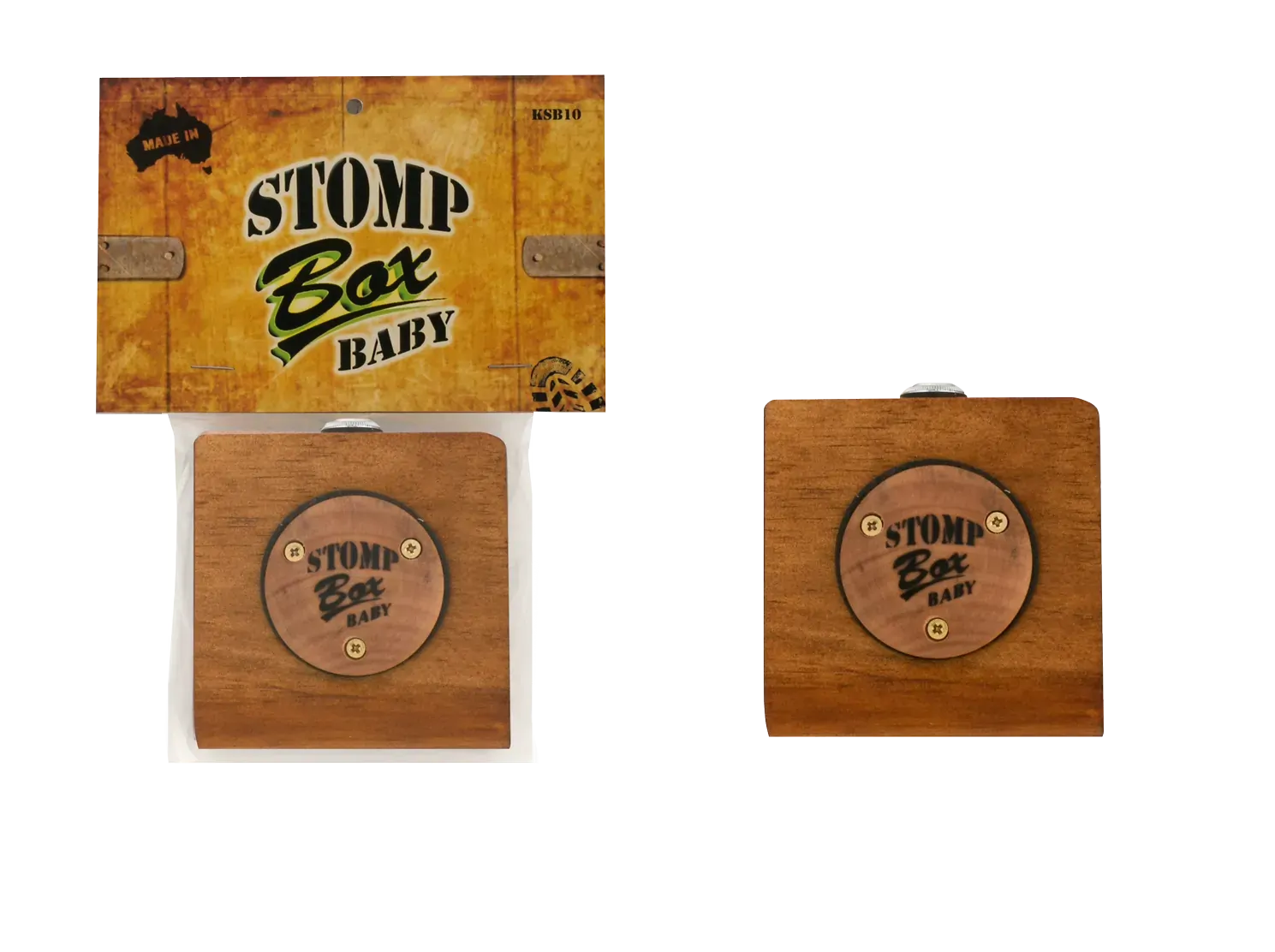 The Stu Box Stomp Box Baby KSB10 is a premium floor effect unit designed to enhance the sound of your acoustic instrument. Made in Australia, this stomp box features a high-quality piezo pickup that ensures clear sound capture, making it an ideal accessory for musicians looking to elevate their performances. Crafted from durable Australian timber, the rectangular case not only offers strength but also showcases the natural beauty of the wood with an oiled finish that highlights its grain. The stomp box is designed with functionality in mind, featuring: - A branded timber dome sweet spot for optimal vibration detection - A heavy-duty input jack for reliable connections - Non-slip foam backing to keep the box securely in place With dimensions of 90mm (W) x 90mm (D), the Stu Box Stomp Box Baby is compact and easy to use. Its ergonomic wedge shape provides comfort during play, making it a perfect choice for musicians seeking both reliability and aesthetic appeal in their acoustic performances.