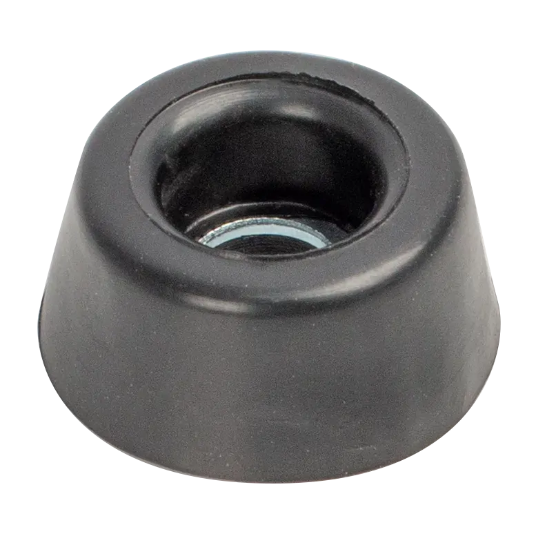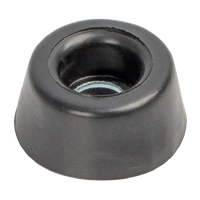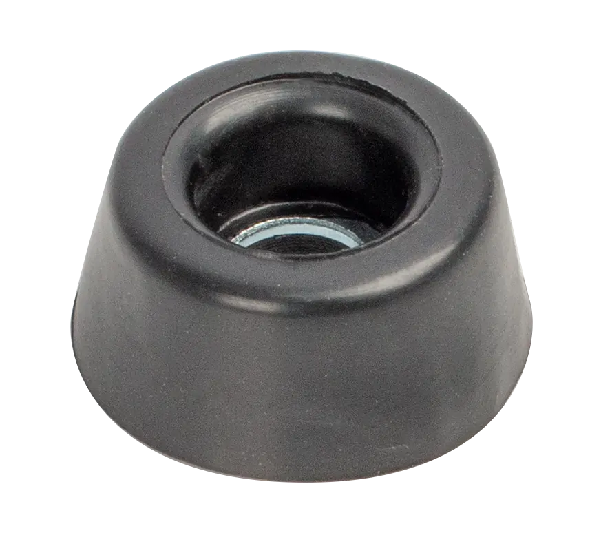 The AMS Tapered Rubber Foot (SKU: CPA60) is a durable and reliable accessory designed to provide stable support and protection for your guitar cases, small amplifiers, effect pedals, and pedal boards. Its tapered design, complemented by a metal washer insert, ensures a secure and solid fit, preventing slipping and damage during use. - Tapered style with metal washer insert for strong, solid fit - Suitable for guitar cases, small amplifiers, effect pedals, and pedal boards - Bottom diameter: 20mm - Top diameter: 16mm - Height: 9mm - Mounting hole diameter: 6mm - Color: Black This rubber foot offers excellent durability and stability, making it an essential component to keep your gear safely elevated and protected during transport or performance.