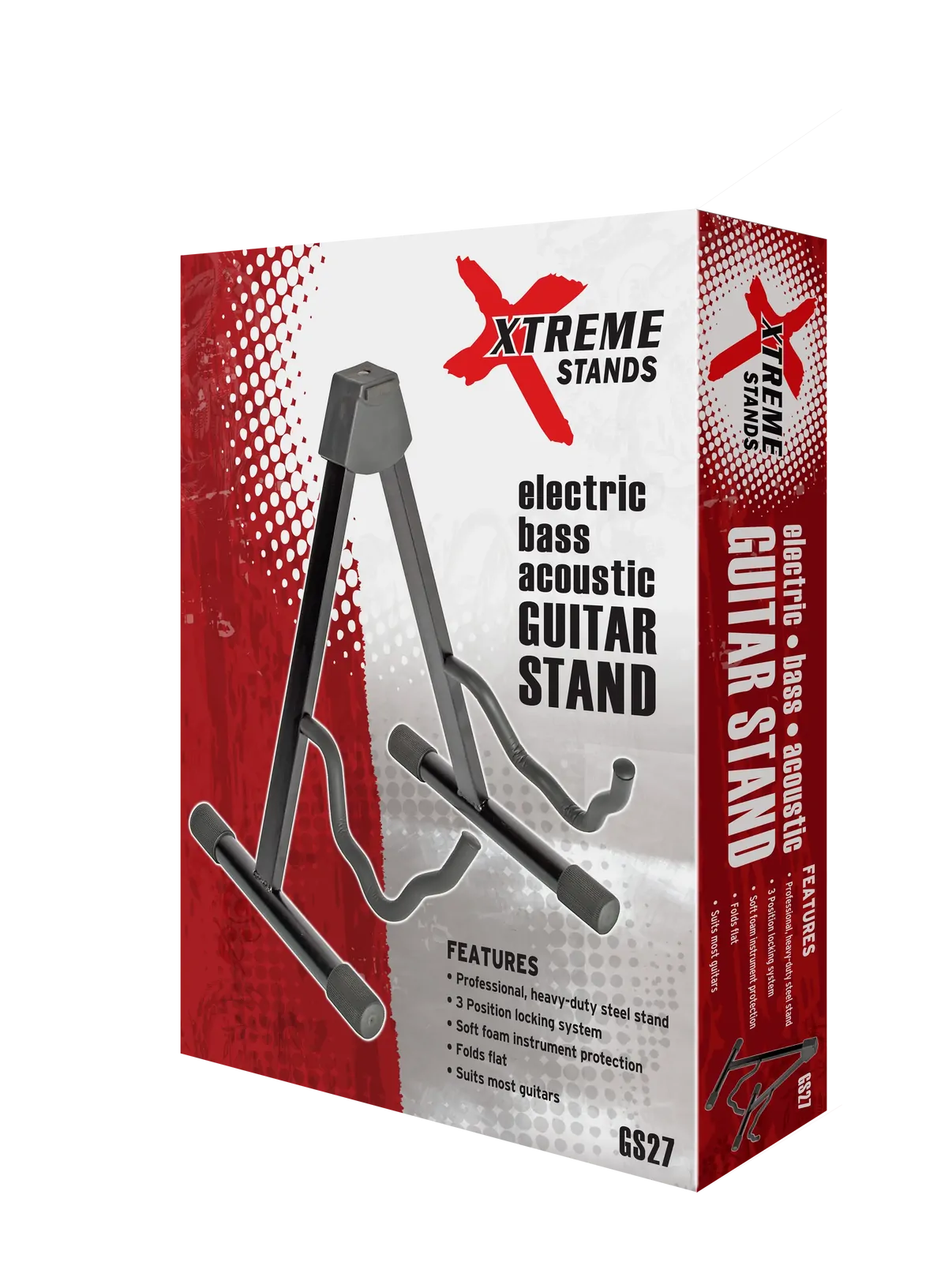 The AMS GS27 Heavy Duty A-Frame Guitar Stand in Black provides reliable and sturdy support for a variety of guitars. Crafted with durability and instrument safety in mind, this stand is an essential accessory for musicians looking to securely display or store their instruments. Key features of the AMS GS27 include: - 3 position locking system for adjustable stability - EVA foam rubber padding to protect your instrument - Folds flat for easy transport and storage - Suitable for all classic and acoustic guitars - Compatible with most electric and bass guitars - Comes in a full colour display box - Sleek black finish for a professional appearance This guitar stand is ideal for musicians and collectors who need a versatile and durable solution for safely holding their instruments. Its heavy-duty construction and protective features ensure your guitar stays secure whether at home, in the studio, or on stage.