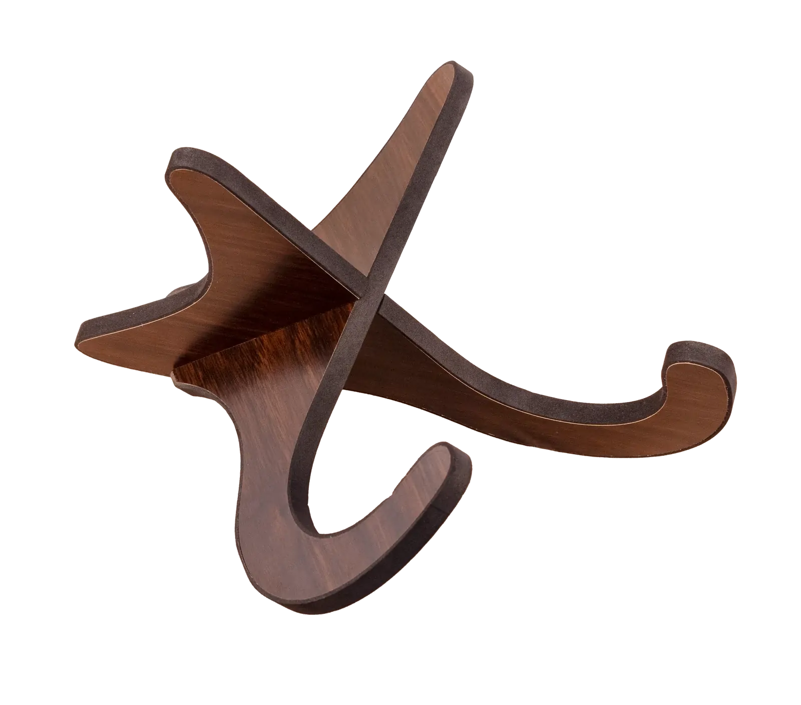 The XTR Ukulele Stand (SKU: UST14) is a stylish and sturdy solution designed to securely display and safeguard your ukulele. Crafted from a durable wood composite and featuring a two-piece construction, this stand is finished with an elegant dark mahogany veneer, making it a perfect addition to any musician's setup. This stand is easy to assemble and provides a stable cradle for your instrument. It is equipped with anti-slip padding to ensure your ukulele stays securely in place, protecting it from damage or falls during use. Key Features: - Strong Two-Piece Construction - Anti-Slip Padding - Versatile Fit for various ukulele sizes (soprano, concert, tenor, and bass) - Compact and Portable Design - Elegant Dark Wood Finish Designed not only for ukuleles but also suitable for violins and mandolins, the XTR Ukulele Stand combines craftsmanship, practicality, and portability, offering a dependable solution for musicians both on the go and at home.