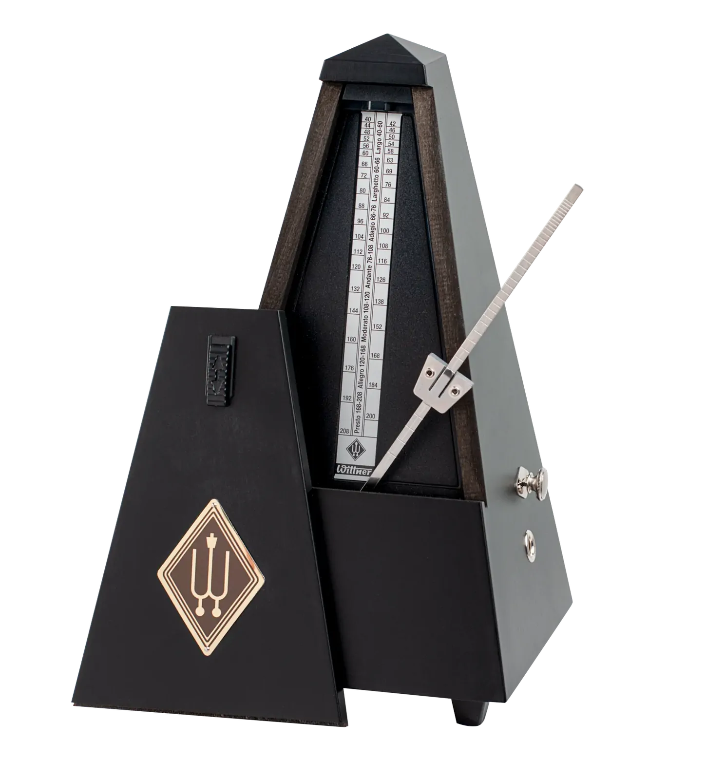 The Wittner Maelzel Series W816M Mechanical Metronome with Bell in Matt Black is a reliable and stylish tool for musicians seeking to improve their timing and rhythm. This mechanical metronome features a classic design and a sleek matte black finish, making it an attractive addition to any music setup. Key features of the W816M include: - Mechanical operation for precise timing without the need for batteries - Bell function to mark the beginning of each measure, enhancing practice sessions - Adjustable tempo range, allowing musicians to set their desired beats per minute - Sturdy construction for durability and long-lasting performance Ideal for musicians of all levels, the Wittner W816M metronome combines functionality with a timeless aesthetic, making it an essential accessory for practicing musicians.