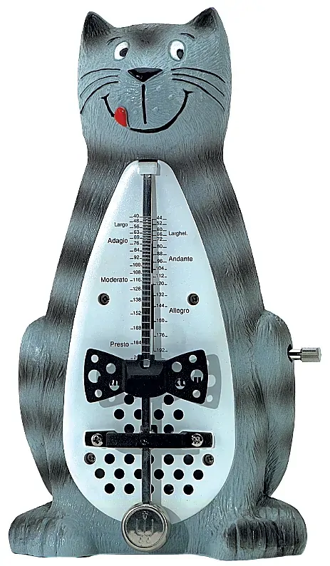The Wittner W839C Taktell Novelty Cat Shape Metronome is a delightful and functional tool designed to enhance your practice sessions. With its charming cat-shaped plastic casing, this metronome adds a playful touch while providing precise tempo control. - Tempo range from 40 to 208 beats per minute - No bell sound, focusing solely on the metronome’s click - Durable plastic casing shaped like a cat Ideal for musicians seeking a reliable tempo guide with a bit of personality, this metronome is perfect for practice rooms, studios, or anywhere you want to maintain your rhythm with a fun feline flair.
