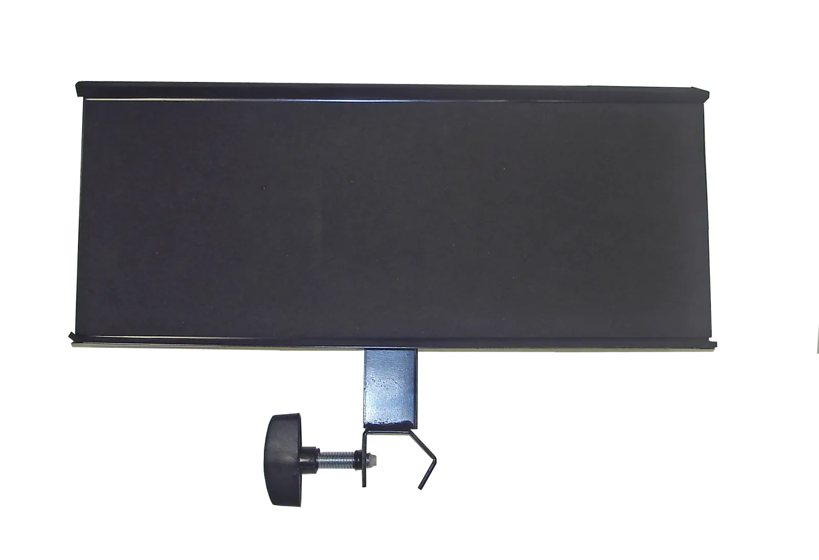 The CPK MSD19 Music Stand Shelf is an essential accessory for musicians and performers seeking to keep their gear organized and accessible during rehearsals and performances. This attachable tray is designed to securely fit onto music stands, microphone stands, and drum hardware, providing a convenient space for your essential accessories. - Sturdy metal construction ensures reliable support - Rubber-lined surface prevents items from slipping off - Ideal for holding picks, tuners, cables, and other small gear - Dimensions: 14 cm depth x 35 cm width - Sleek black finish adds a professional touch Whether you're on stage or in the studio, the CPK MSD19 Music Stand Shelf helps you stay focused on your performance by keeping your important items within easy reach.