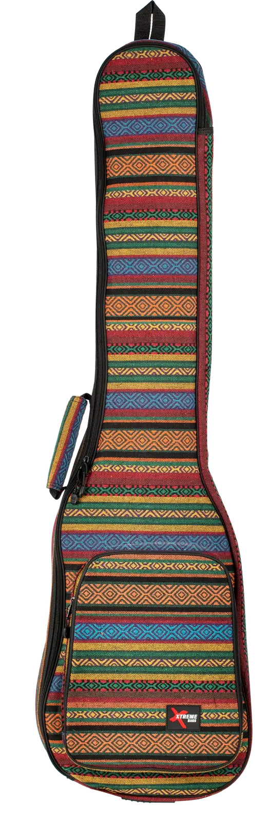 The Xtreme Bohemian Bass Gig Bag is designed for musicians who value both style and protection. This multi-colored padded bag features a vibrant weave pattern that not only makes a bold visual statement but also ensures durability for everyday use. Key features of the gig bag include: - Multi-colored weave pattern fabric for eye-catching aesthetics - 5mm sponge padding and lining for enhanced protection - Reinforced areas at the headstock and bridge to safeguard your instrument - Full-length zipper for easy access to your bass guitar - One accessory/music pocket for storing essentials - Cross-stitched cushioned carry handle for a comfortable grip - Two adjustable shoulder straps with comfort pads for easy carrying - Moisture-resistant bottom with rubber tread to protect against wear and moisture - Toggles on all zippers for secure closure - Rubber Xtreme logo badge for a distinctive finish This gig bag is perfect for bass guitarists looking for a practical solution for daily practice sessions, gigs, or travel. With its combination of comfort features and durable construction, the Xtreme Bohemian Bass Gig Bag is a reliable companion for any musician on the go.