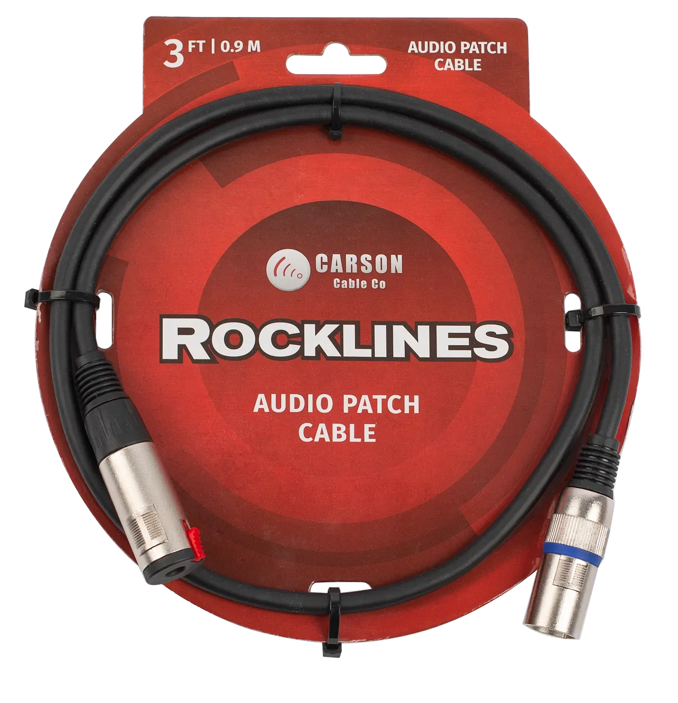 The Carson Cable Co Rocklines 3ft Audio Cable is an essential accessory for musicians and audio professionals seeking a reliable connection for their audio equipment. This cable features a 6.3mm mono socket (female) on one end and a male XLR connector on the other, allowing for clear signal transmission between instruments, mixers, and microphones. Key features include: - Length: 3 feet - Connector Type: 6.3mm mono socket (female) to XLR male - Designed for microphone and audio connections Constructed for durability and excellent compatibility, this compact and sturdy cable is perfect for any audio setup, ensuring a seamless connection for your performance or recording needs.