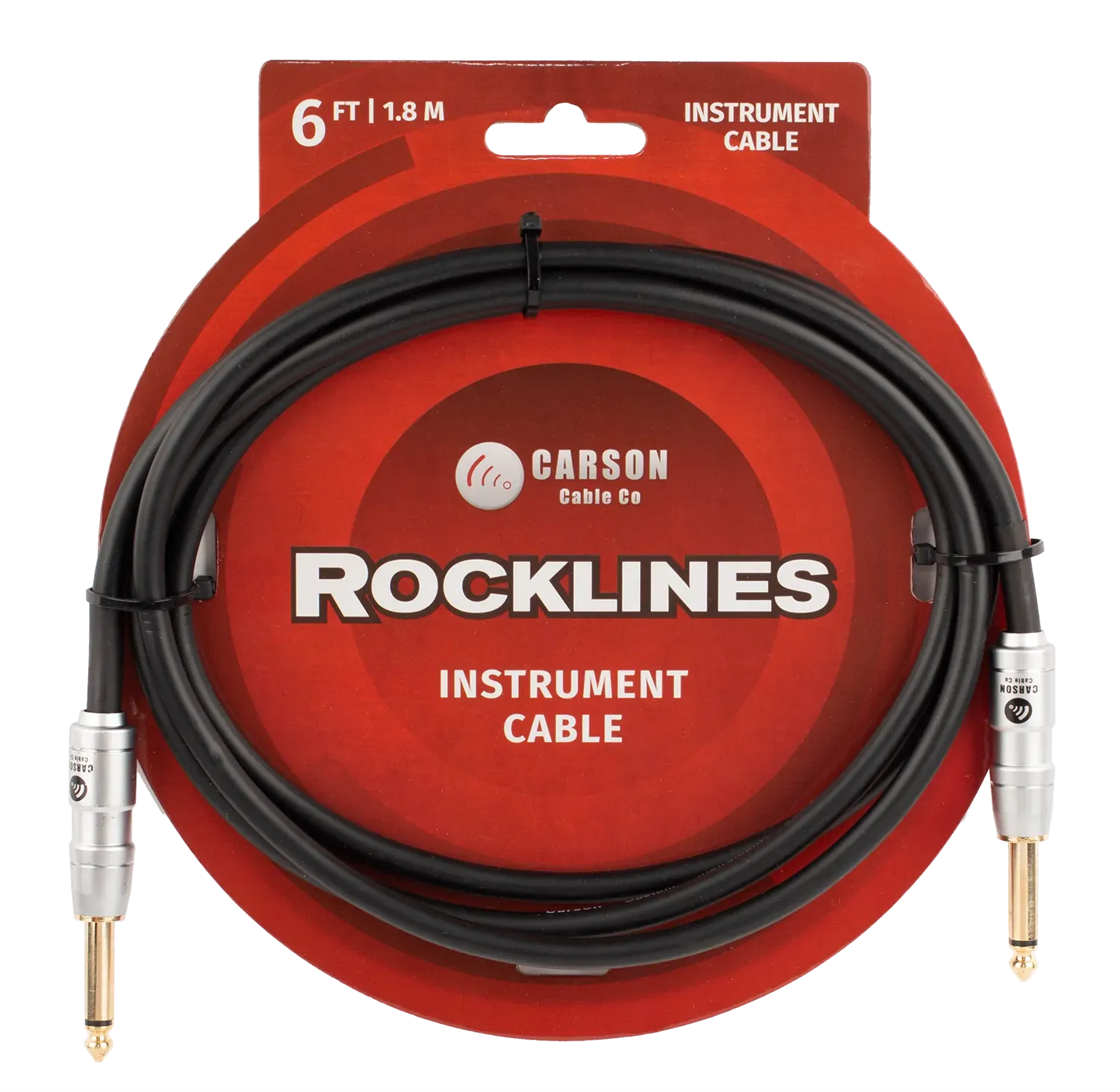 The Carson Cable Co Rocklines 6ft Noiseless Instrument Cable in Black is engineered to provide clear, noise-free sound for your instrument setup. This high-quality cable features a durable construction and reliable connectors, making it an excellent choice for practicing, recording, or live performances. - 6-foot length for versatile use - 7mm outer diameter for a sturdy yet flexible cable - Heavy-duty satin chrome connectors with gold-plated shafts for enhanced signal transfer - Straight-to-straight design for easy connection - Oxygen-free copper conductors for superior sound quality - Low resistance and capacitance for minimal interference - Wide dynamic range for a natural sound With its sleek black finish, this noiseless instrument cable is perfect for musicians looking for a dependable connection that preserves the integrity of their sound while minimizing noise. Enjoy crisp, clear tone and maximum noise reduction at all performance levels with the Carson Cable Co Rocklines instrument cable.