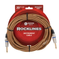 The Carson Cable Co Rocklines 20ft Braided Vintage Tweed Guitar Cable combines classic style with high-performance sound quality. Designed to deliver a clean, interference-free signal, this cable is perfect for musicians seeking reliable tone and durability on stage or in the studio. Its vintage tweed exterior adds a timeless look to your rig. - Length: 20 feet - Noiseless braided design for clear signal transmission - Vintage tweed outer covering for classic aesthetics and added durability - Straight to straight heavy-duty diecast connectors with gold shafts This cable is an excellent choice for guitarists and other musicians who want a dependable connection with a vintage-inspired appearance.
