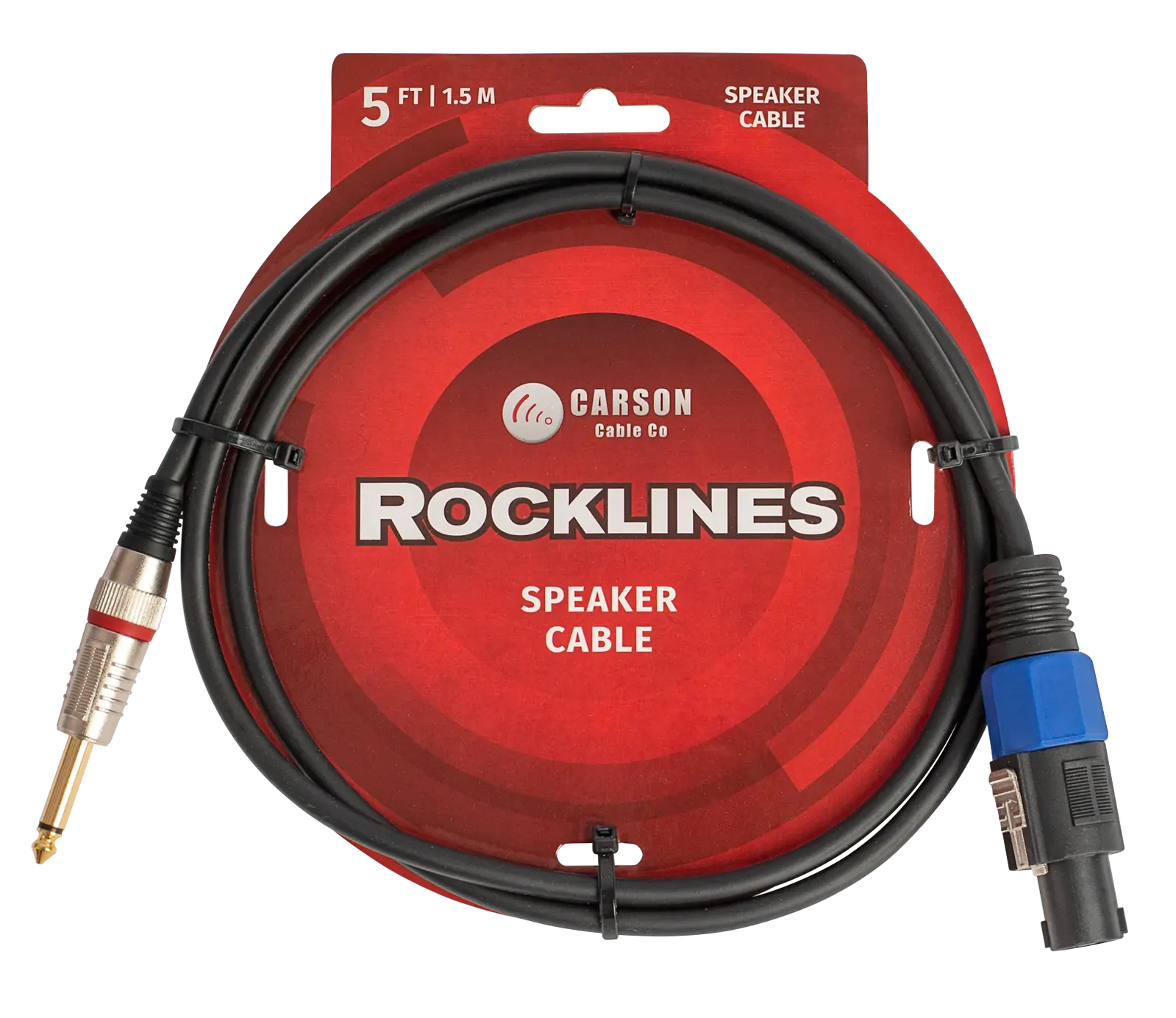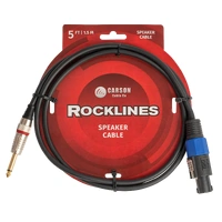 Introducing the Carson Cable Co Carson Rocklines 5ft Speaker Cable Speakon, a reliable and high-quality solution for your audio needs. This speaker cable is designed to deliver excellent performance and sound clarity in a variety of settings. Key features of the Carson Rocklines speaker cable include: - Length: 5 feet - Type: Speakon to jack connection - Outer Diameter: 7mm - Gauge: 15 gauge, 2 conductor - Connectors: Straight heavy-duty diecast 6.3mm (M) jack with gold shaft to Speakon (M) Whether you're connecting speakers for a live performance or setting up a home audio system, the Carson Rocklines speaker cable ensures a robust and clear audio experience. Trust in the quality and durability of Carson Cable Co for all your audio connections.