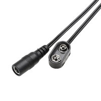 The Carson Cable Co Carson 9V Clip DC Cable is an essential accessory for musicians seeking a reliable power solution for their effect pedals. This compact cable connects a 9V battery clip to a 2.1mm male DC connector, making it ideal for powering pedals that do not have a DC input socket. Key features include: - 9V battery clip to 2.1mm (male) DC connector - Designed specifically for effect pedals without a DC input socket - Convenient 10cm cable length - Sleek black color With its practical design and compact size, this cable easily integrates into any pedal setup, providing a simple and effective way to power your gear using a 9V battery.
