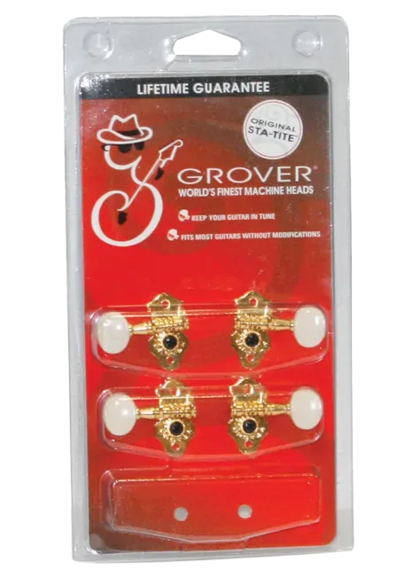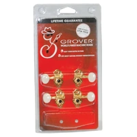 The Grover GRO410WG Ukulele Machine Head Set in Gold with Off White Button is an essential upgrade for any ukulele enthusiast seeking reliability and performance. Crafted by Grover, a trusted name in musical products, this machine head set combines quality construction with an elegant design. Key features of the Grover GRO410WG include: - Durable construction for long-lasting use - Sleek gold finish that adds a touch of style to your instrument - Off white buttons for a classic look - Designed for easy installation on your ukulele Whether you're a seasoned musician or just starting out, the Grover GRO410WG offers great value and enhances the tuning stability of your instrument. Experience the difference that quality tuners can make in your music.