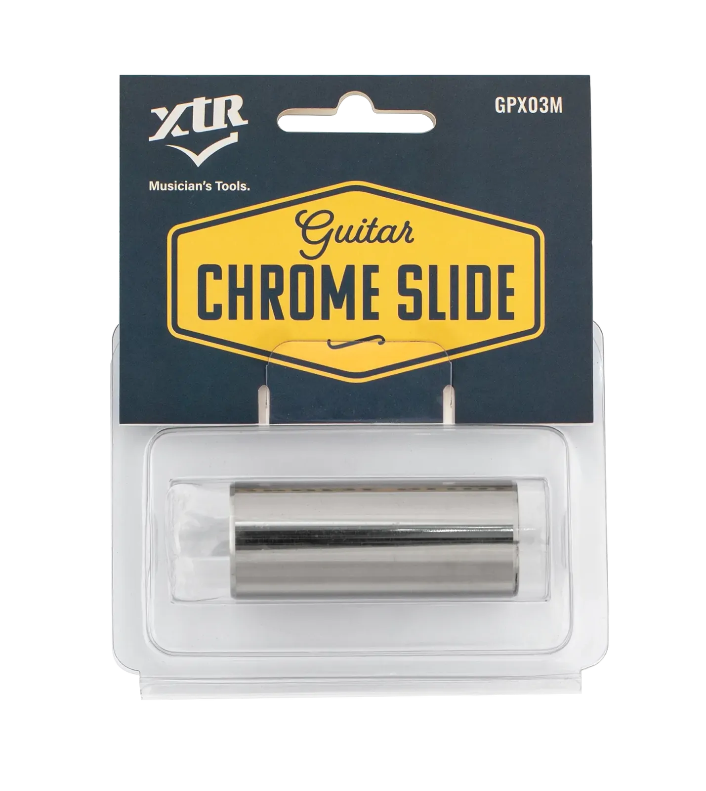 Introducing the XTR Chrome Slide - Medium, a premium slide designed for musicians seeking quality and performance. Crafted from durable chrome steel, this slide delivers a clean and bright tone, enhancing your playing experience. Its lightweight steel construction provides improved sustain and sparkling harmonics, making it an excellent choice for both beginners and seasoned players. The regular wall thickness ensures a comfortable grip and easy handling during performances. Whether you're playing guitar, resonator, or other string instruments, the XTR Chrome Slide - Medium offers reliability and great value for your musical journey.