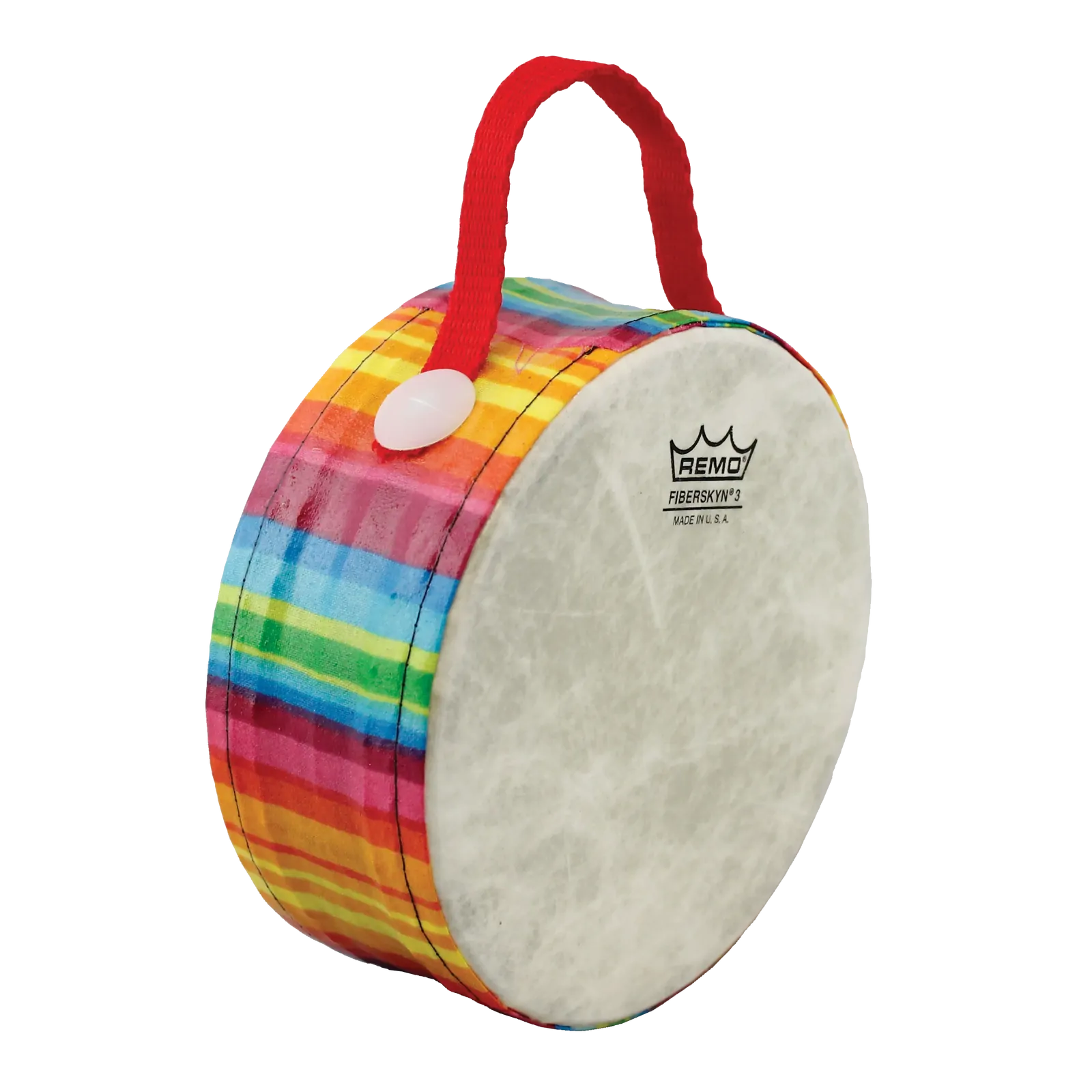 The Remo Lynn Kleiner 5 Inch Baby Drum with Mallet is a vibrant and durable percussion instrument specifically designed for young musicians. With its colorful rainbow finish, this compact drum is visually appealing and easy for little hands to handle. - Durable construction with a colorful rainbow cover - 5-inch diameter and 2-inch depth for a balanced sound - Plain drumhead for versatile play - Equipped with a handle for easy grip and transport - Includes a twin ball mallet for immediate play This baby drum is perfect for introducing children to rhythm and music, providing a fun and engaging way to develop their coordination and musical skills.