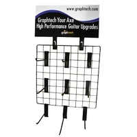 The Graph Tech Slat Wall Display Unit - Black Wire Mesh Rack is a sleek and durable solution designed to effectively showcase your Graph Tech products. Constructed from black wire mesh, this display unit offers a modern and sturdy option, making it ideal for retail environments that aim to organize and highlight items neatly. Key features include: - Black wire mesh design for durability and modern appeal - Features a Graph Tech branded header for clear product identification - Compatible with all Graph Tech point-of-sale packaged products - Each hook can display a minimum of four packs, maximizing product visibility This display rack is perfect for retailers or music stores looking to present Graph Tech products in an organized, professional, and attractive manner.