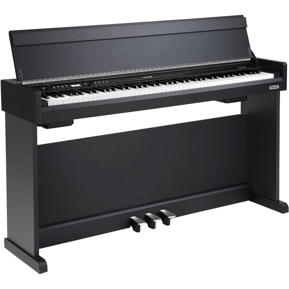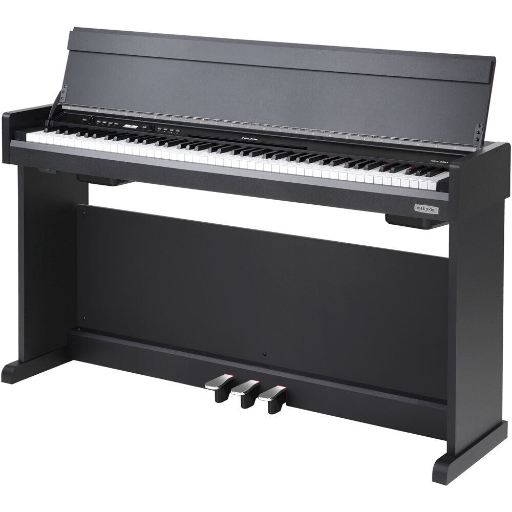 NUX NCK-330 88-Key Upright Digital Piano with Triple-Sensor Keyboard, Bluetooth MIDI, 143 Sounds, 256 Polyphony, Customizable Pedals, Black Finish