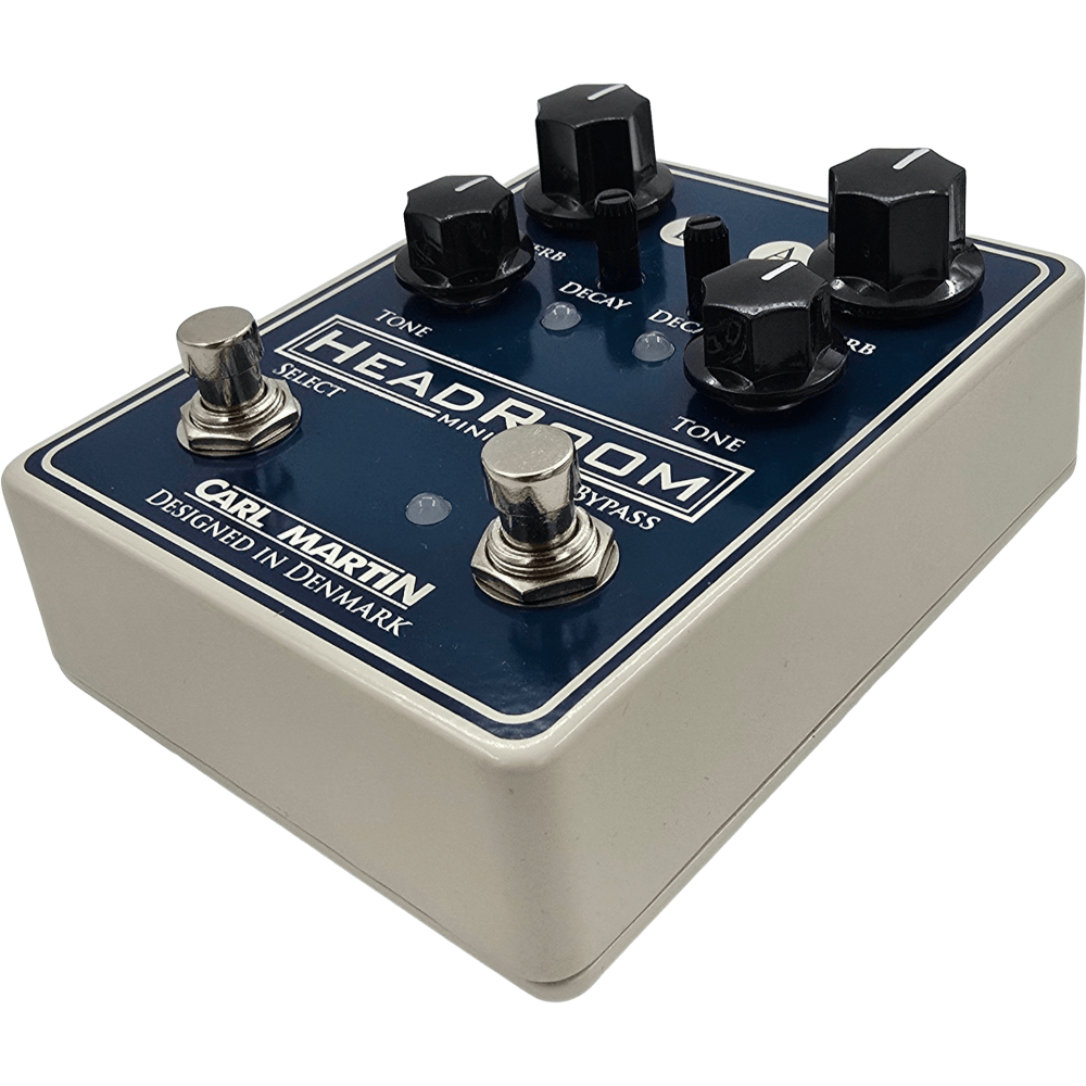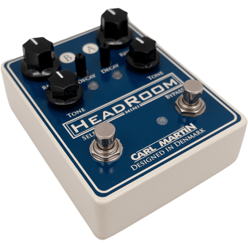 Key Features Compact dual spring reverb simulator Dedicated level and tone for each reverb Buffered bypass output Powered by standard 9V DC Lightweight and pedalboard-friendly Dimensions: 55 x 94 x 124 / 2.17″ x 3.70″ x 4.88″ Weight: 0.35 kg / 0.77 lbs Specifi cations Input Impedance: 1M Ohm Output Impedance: 100 Ohm Signal-to-Noise Ratio: 70 dB Input/Output: Mono-Stereo / Mono-Stereo Remote Options: Preset A/B switching Bypass Type: Buffered Power Requirements: 9V DC (regulated), 250mA minimum, center negative Power Consumption: Max. 120 mA A/B Demo of Headroom and Headroom Mini by Philip Czarnecki: