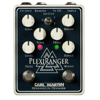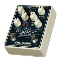 Plexi gets its name from the early Marshall amps that used a plexiglass front panel during the ‘60s, before being replaced by brushed metal in 1969. Think early Marshall amps as thrashed by Jimmy Page, Eric Clapton, Pete Townshend, Ritchie Blackmore & Rick Neilson. Key Features Two amazing pedals in one unit Treble booster and Plexi-style gain in one Midrange shaping and high cut controls Authentic classic rock tones Compact footprint True bypass switching Dimensions: 120 x 95 x 56 / 4.72″ x 3.74″ x 2.20″ Weight: 0.42 kg / 0.93 lbs Specifi cations Input: 1M Ohm Output: 200 Ohm S/N-Ratio: 54 dB Tone: High Cut Boost: +15dB Range: +15dB Freq: 250Hz-5kHz Power consumption: max. 100mA Power supply: 9V DC (regulated), 150mA minimum, 2.1 mm female plug, center negative (-) Brett Kingman Demos the PlexiRanger:
