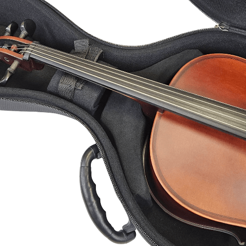 For use only with an HQ Cello Hard Bag, cleverly adapting a 1/2-sized case to accommodate the 1/4 size instrument.  This three-piece adaptor provides the added advantage of the player retaining their case when they graduate to 1/2.