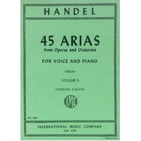 15 arias by Handel for high voice and piano. Contents: Care selve (Atalanta) Mirth admit me (L'Allegro) Non lo diro (Tolomeo) Recit: O didst thou. Aria: As when the dove (Acis & Galatea) Recit: Frondi tener. Aria: Ombra mai fu (Serse) Recit: O worse the Death. Aria: Angels everbright (Theodora) O had I Jubal's Lyre (Joshua) O Sleep (Semele) Rendi il serno (Sosarme) Sommi Dei (Radamisto) Sweet Bird (Il Pensieroso) Sound and Alarm! (Judas Maccabeus) There the brisk sparkling Nector (Choice of Hercules) Verdi Prati (Alcina) So shall the Lute and Harp (Judas Maccabeus). 45 Arias from Opera and Oratorios - Volume 2 Composer: George Frideric Handel Publisher: International Music Company Instrument: Voice Pages: 64