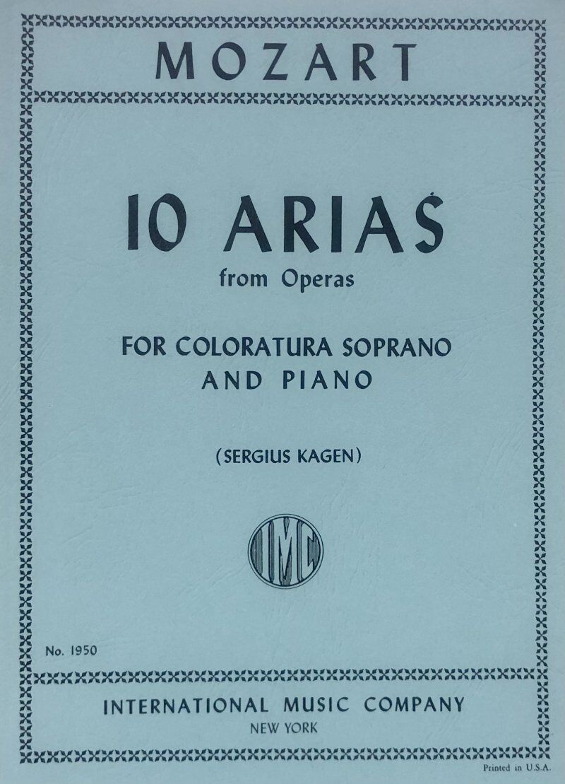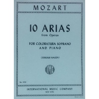 10 Arias. Composed by Wolfgang Amadeus Mozart (1756-1791). Edited by Sergius Kagen. Vocal score. Coloratura Soprano and Piano Arias from Operas Composer: Wolfgang Amadeus Mozart Publisher: International Music Company Instrument: Voice Pages: 1