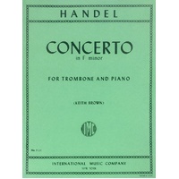 Composed by George Frideric Handel (1685-1759). Edited by Fussl / Keith Brown. Score and part. Concerto in F minor Composer: George Frideric Handel Publisher: International Music Company Instrument: Trombone Pages: 1